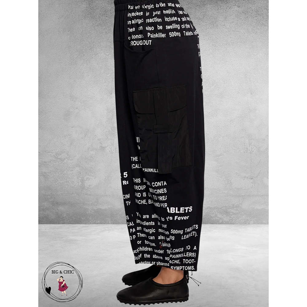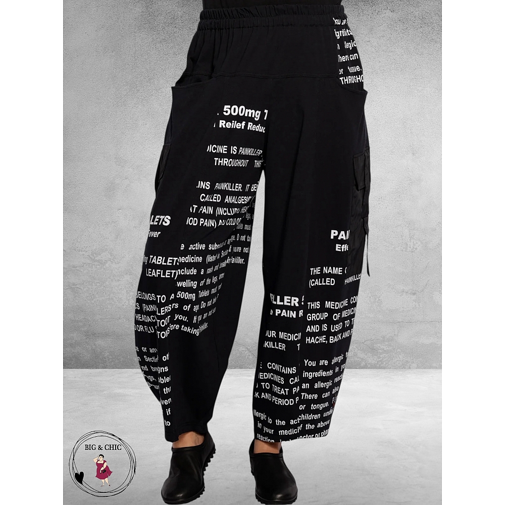 CHALONA Ballonbroek Zwart Met Grijze Tekst