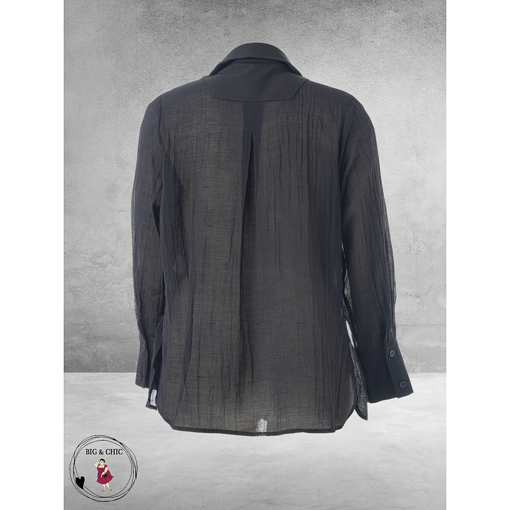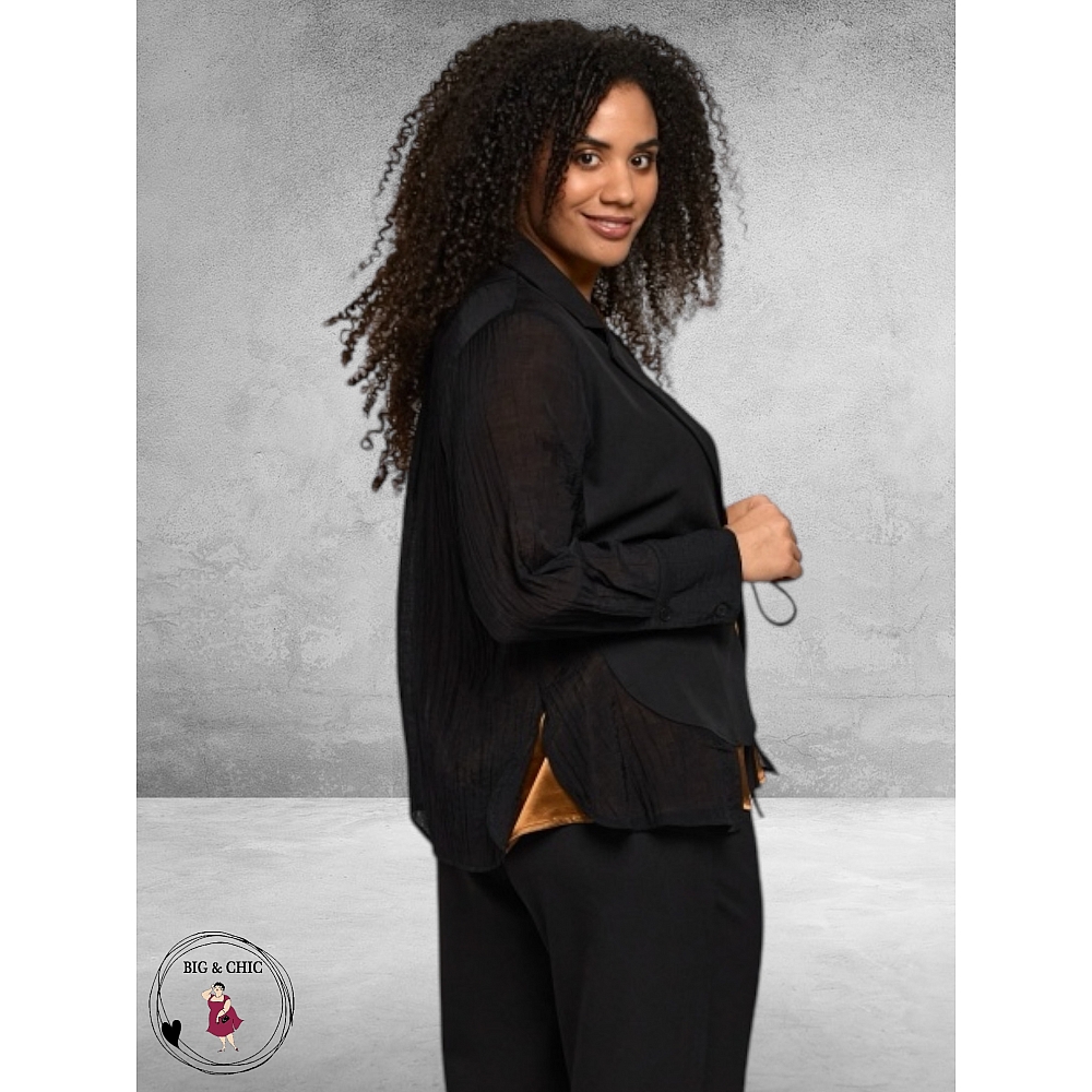 De semi-transparante achterkant voegt een vleugje allure toe, terwijl de voorkant is afgewerkt met een dikkere, niet-doorschijnende stof voor een classy en zelfverzekerde look.