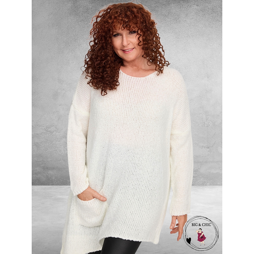 Lekkere knuffel boucle a-symetrische trui die je lekker warm houd van AMANDINE.
