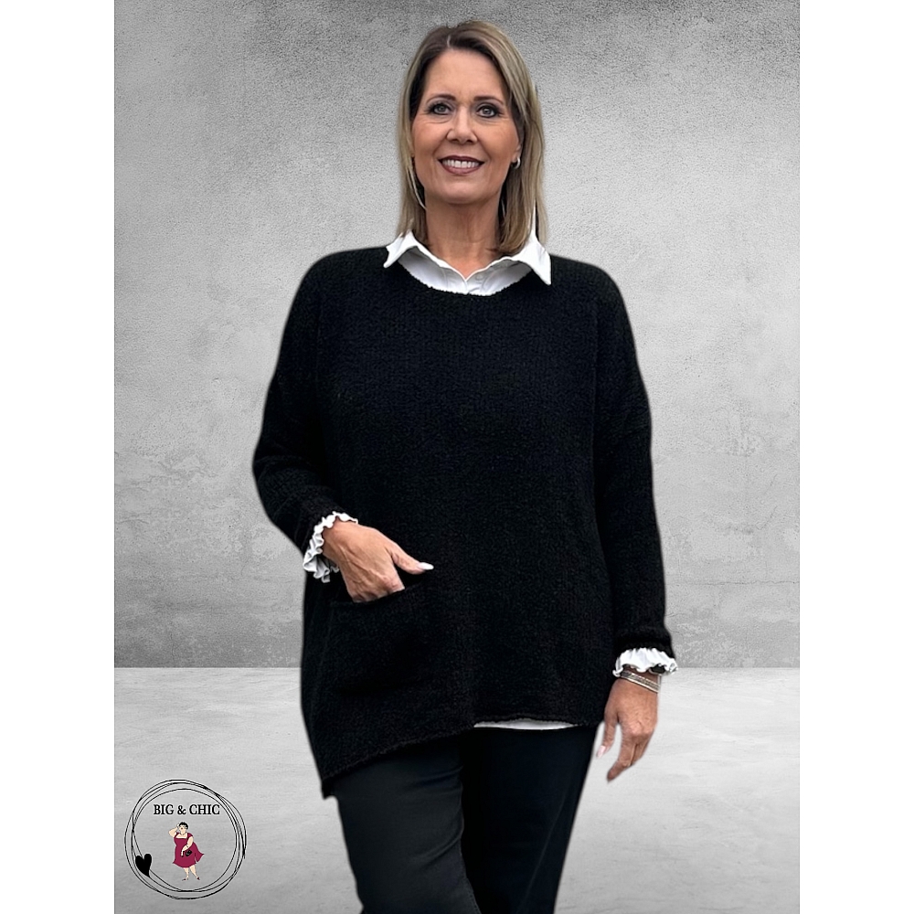 AMANDINE Trui A-symetrisch Bouclé Zwart