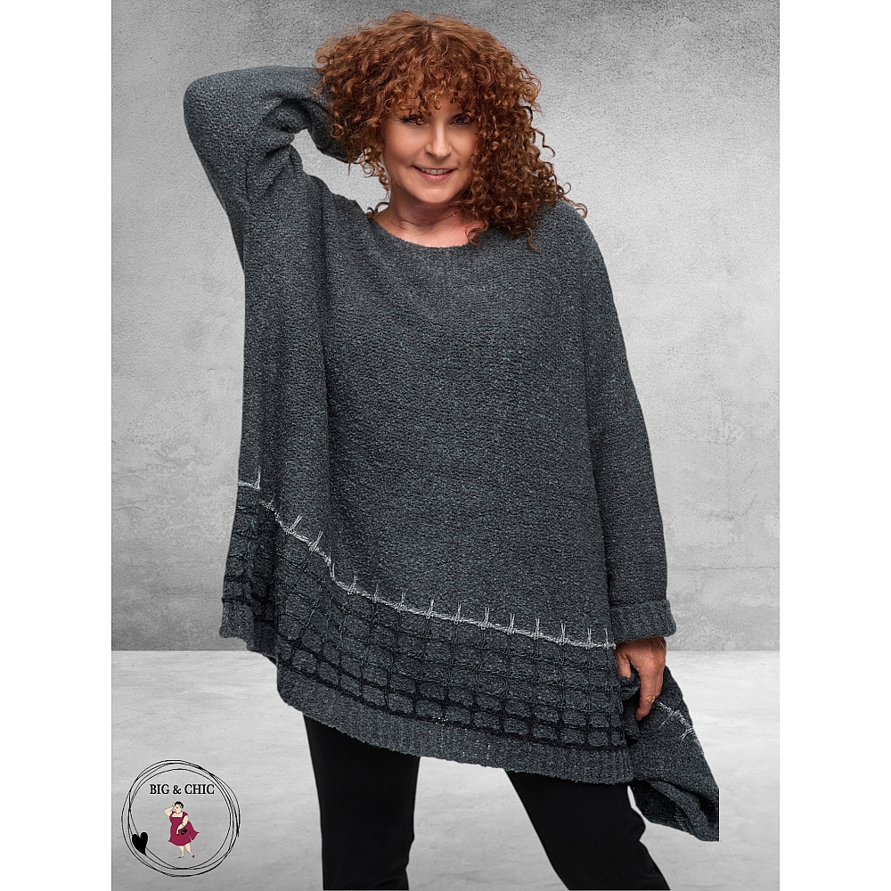 Dankzij het one size model, geschikt van maat 46 t/m 56, combineert deze trui een comfortabele pasvorm met een modieuze oversized look.