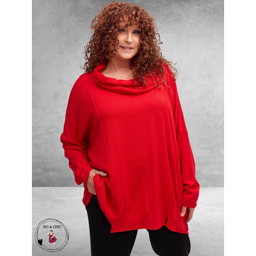 De wijd afhangende col en het oversized silhouet geven de trui een nonchalante, moderne uitstraling.