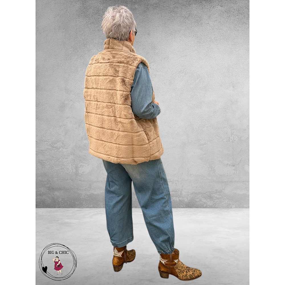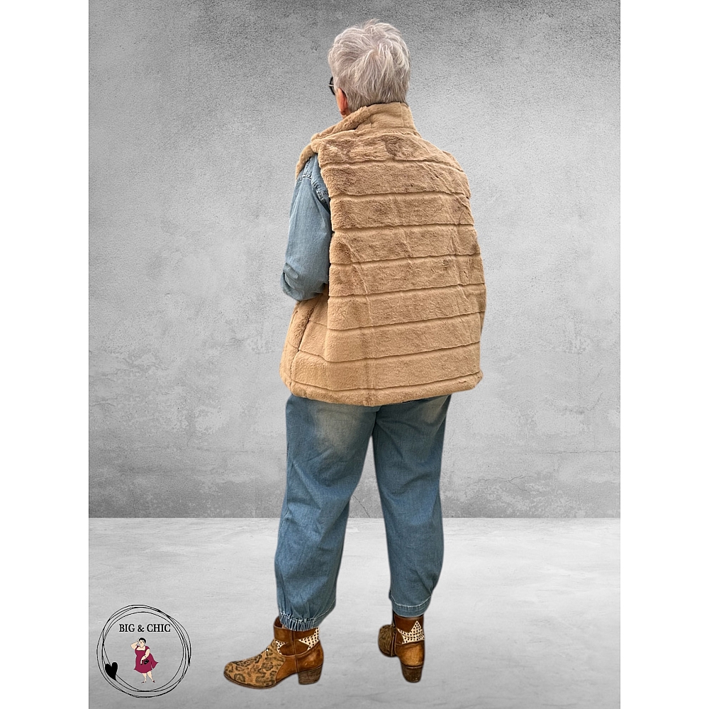 Gemaakt van hoogwaardig imitatiebont voelt dit gilet luxe aan, zonder het gewicht van echte vacht.