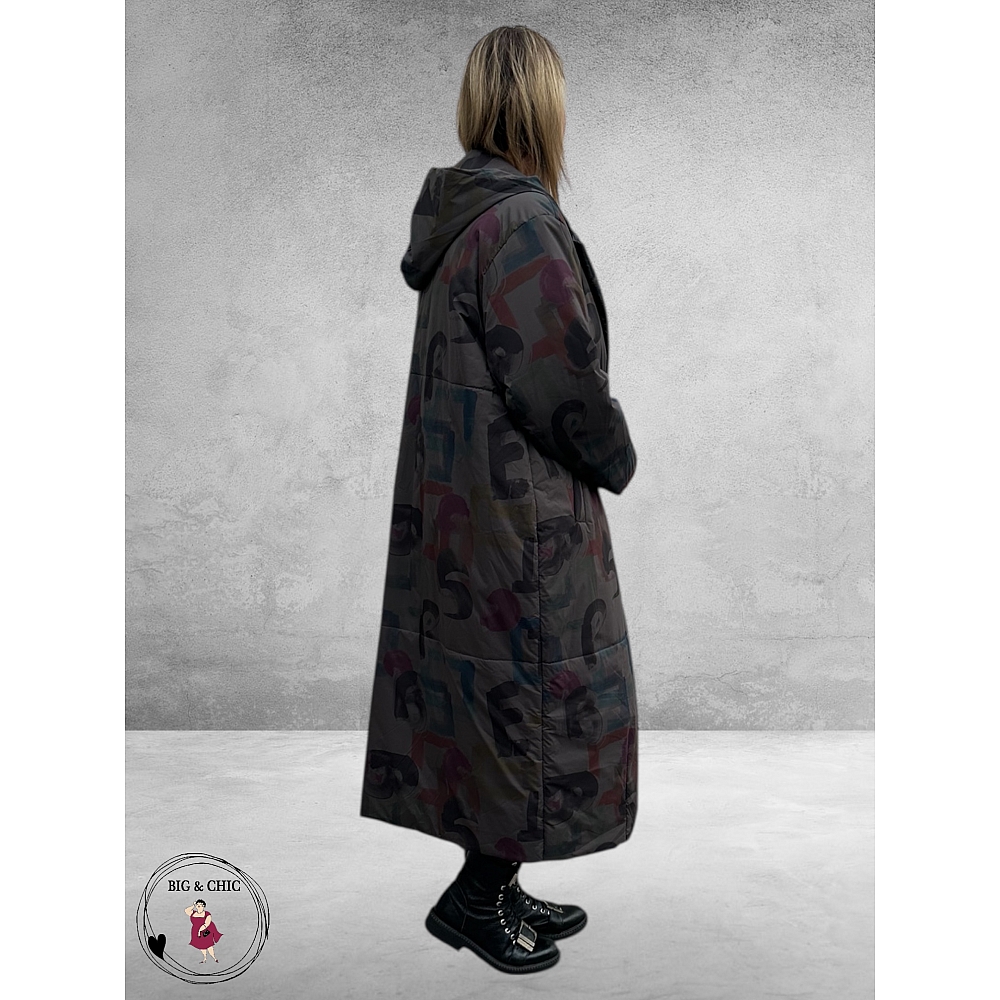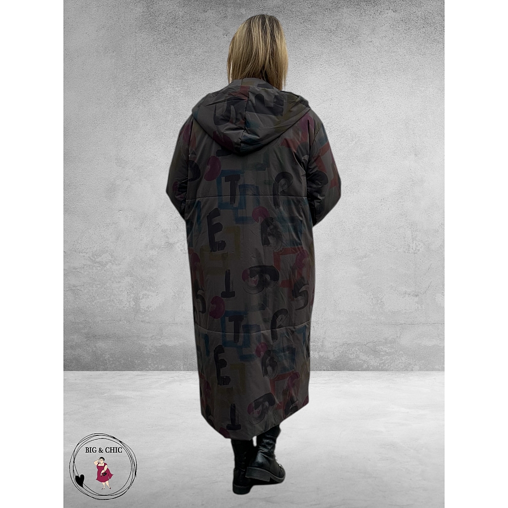 De lange pasvorm en zachte vulling zorgen voor ultiem comfort, terwijl de donkergrijze kleur met subtiele letteropdruk een moderne, sportieve look geeft.