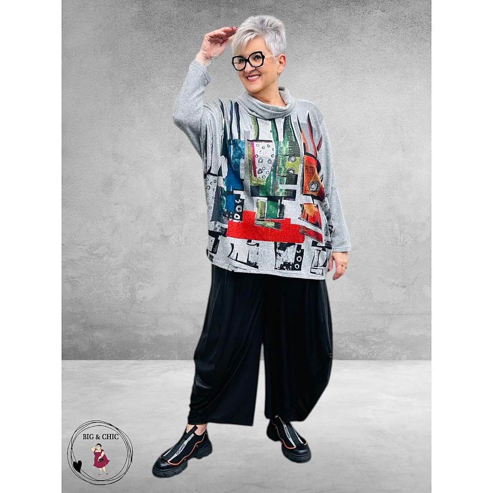 Het Divas Planet shirt Abstract Col in grijs is een stijlvolle blikvanger met een moderne, artistieke uitstraling.De veelkleurige abstracte print op de voorzijde is verfijnd afgewerkt met subtiele zilverkleurige accenten, die het geheel een chique glans en feestelijke touch geven.