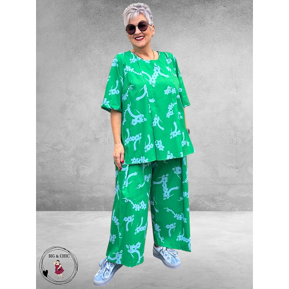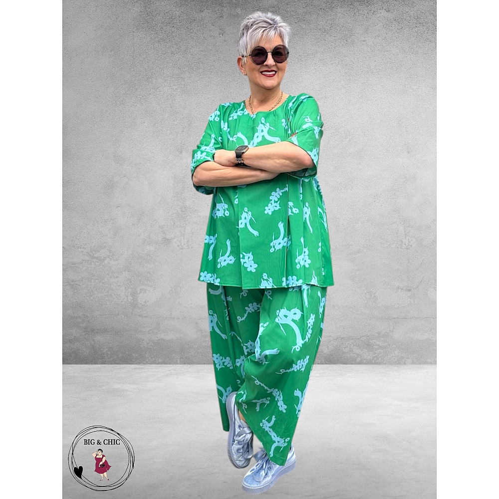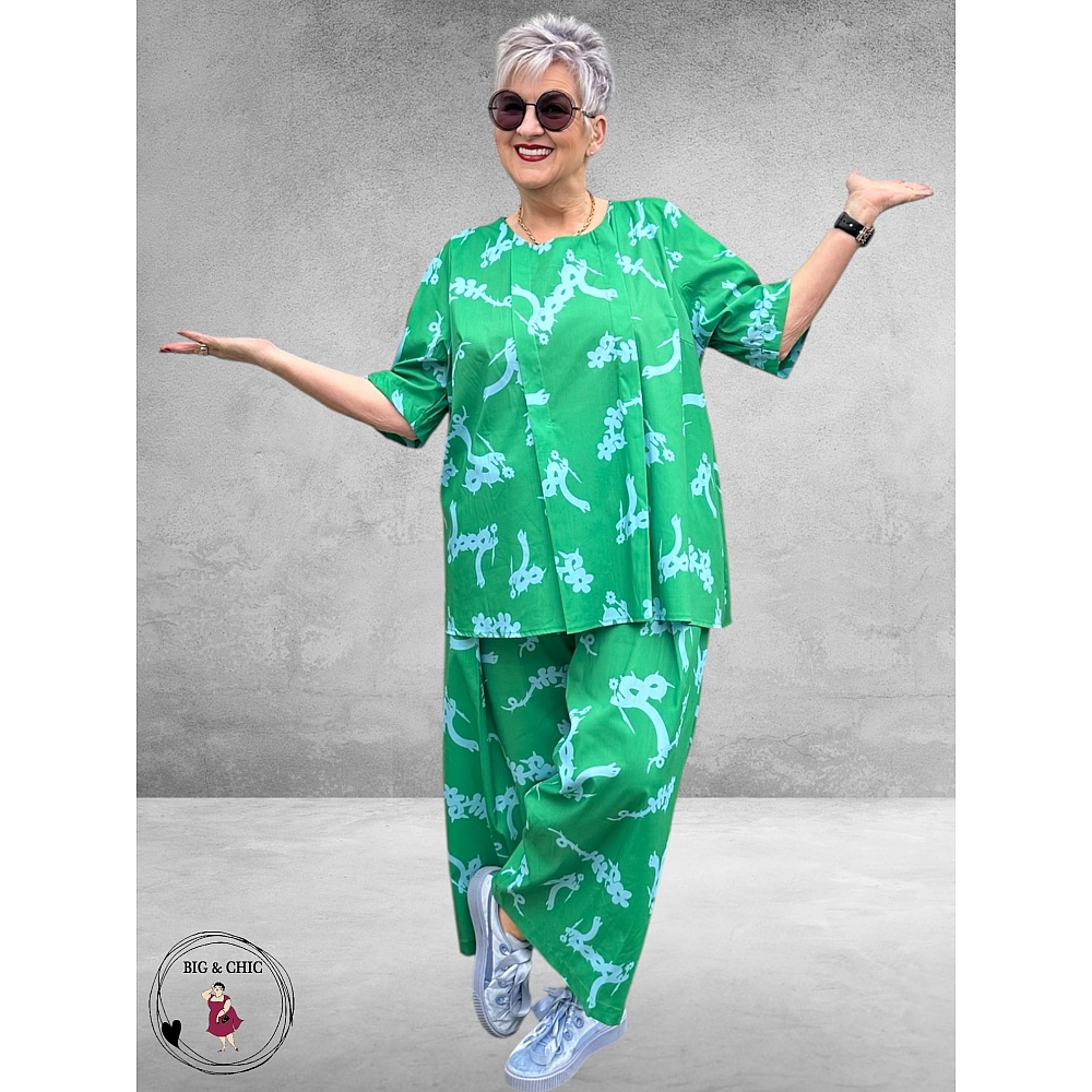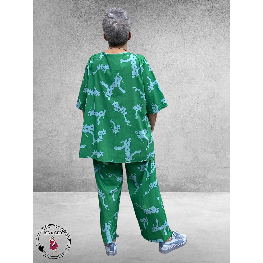 Wat dit pak écht bijzonder maakt, is de frisse kleurstelling: appelgroen met een lichtblauwe print. Prachtig als complete set, maar ook los te combineren met trendy lichtblauw of wit.