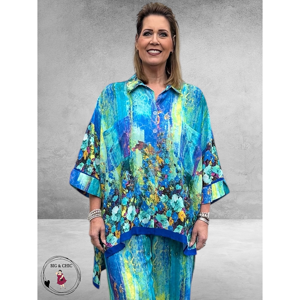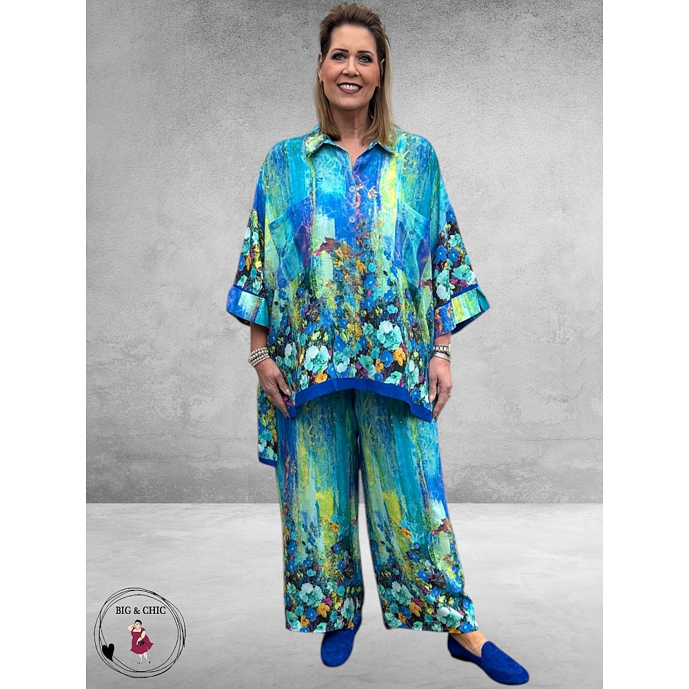Dit setje bestaat uit een lange, wijde broek en een oversized high-low blouse. Samen vormen ze een echte eyecatcher, maar ook afzonderlijk zijn het stuk voor stuk toppers in je garderobe.