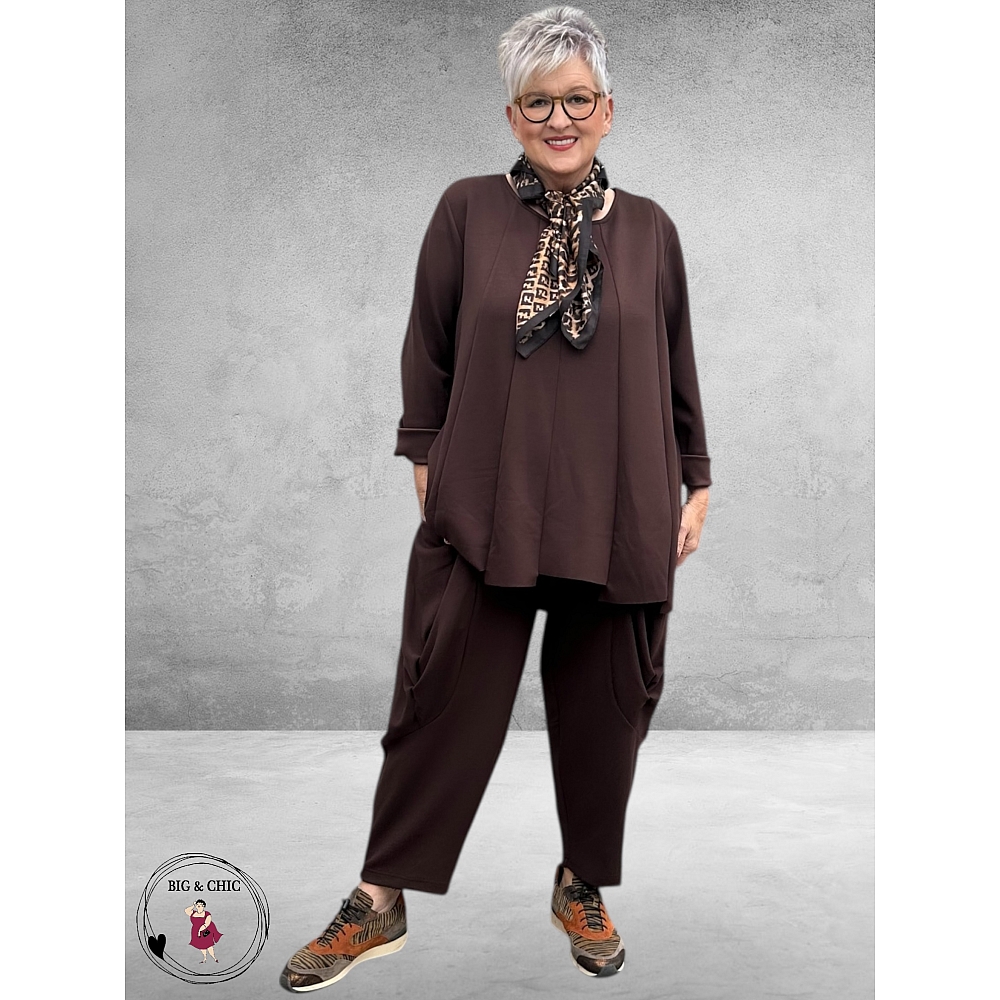 Onder de zakken zorgt een subtiel rimpeldetail voor een speels effect en het karakteristieke ballon-silhouet.