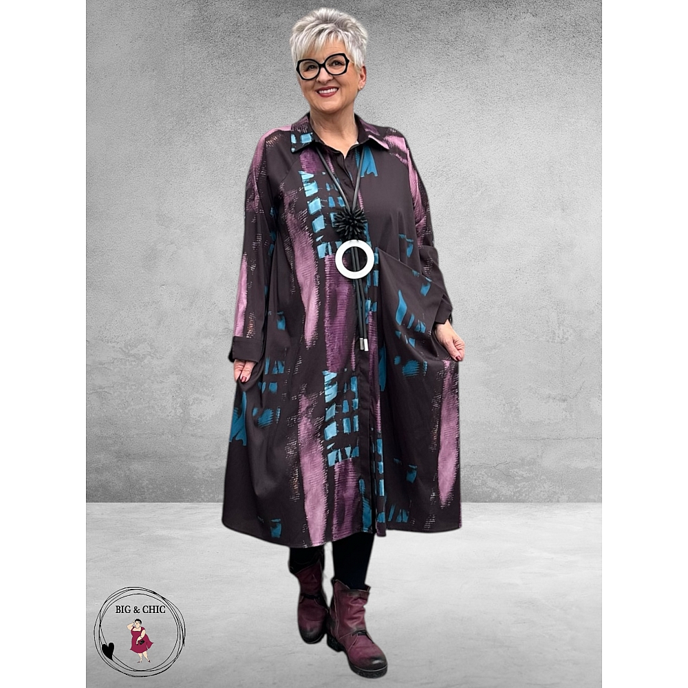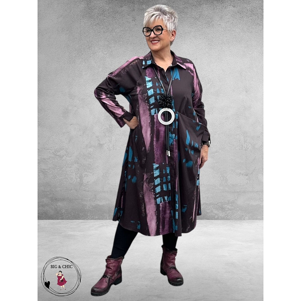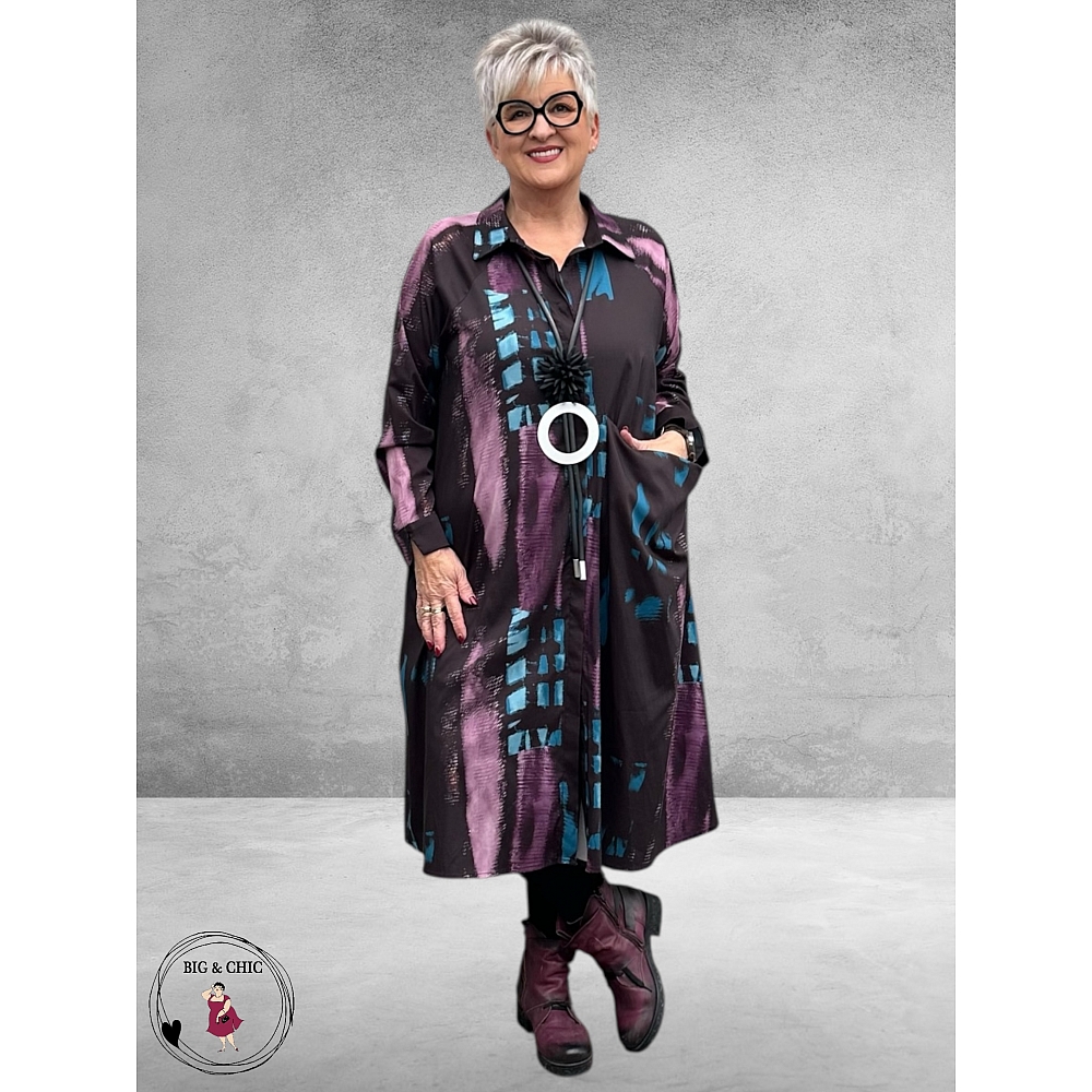 De coole kleurencombinatie van blauw en paars maakt deze jurk dé ideale keuze voor de winter – warm, stijlvol en veelzijdig.
