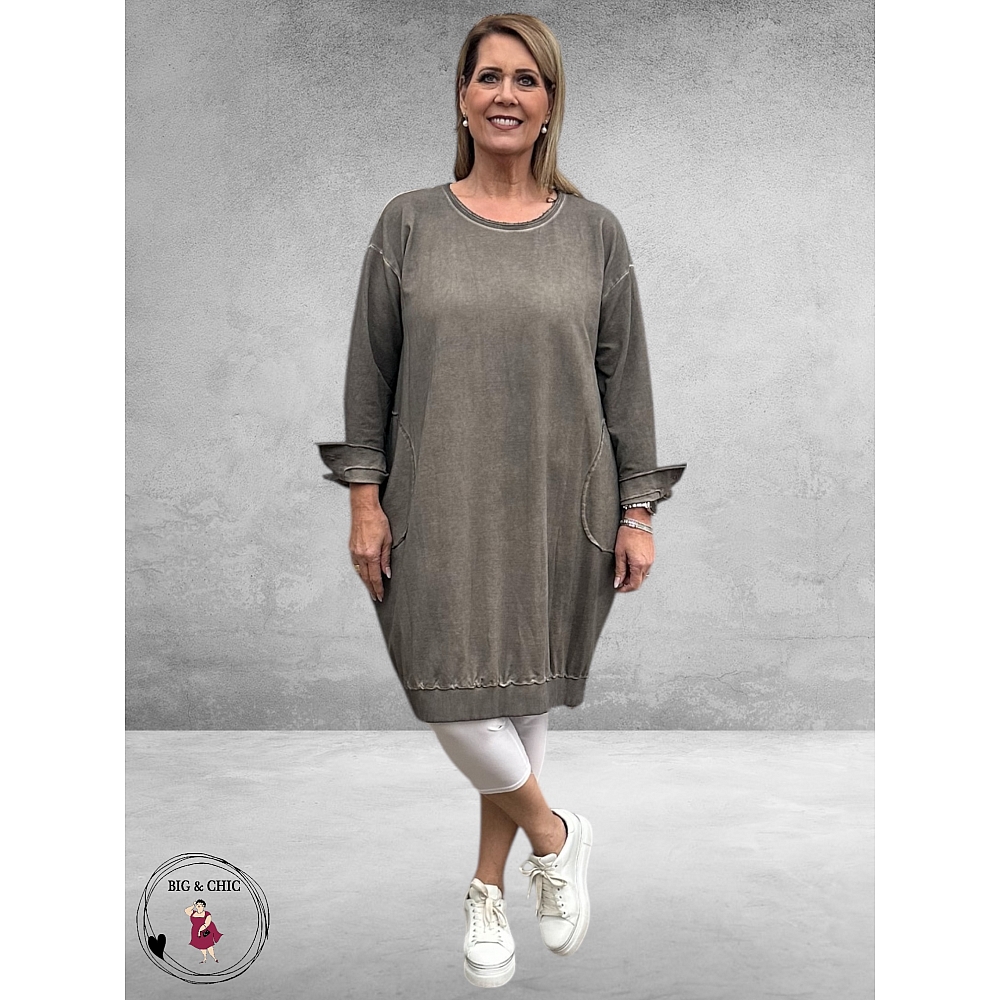 Deze stoere jurk heeft een unieke uitstraling dankzij de iets lichtere naden die een subtiele tie-dye look geven.