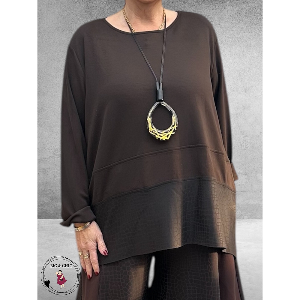 Laat je omhullen door het comfort van deze heerlijk zachte shirt, uitgevoerd in een prachtige donkerbruine tint die elke outfit luxe uitstraling geeft.