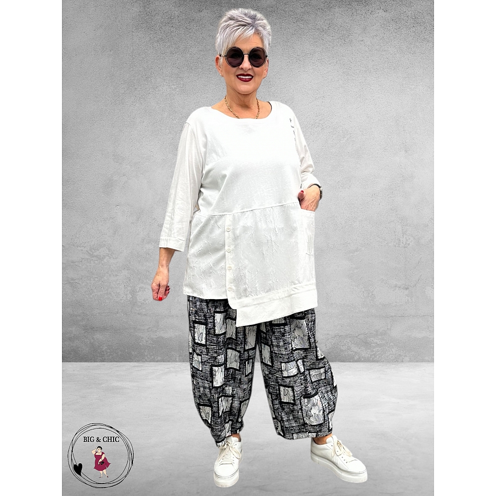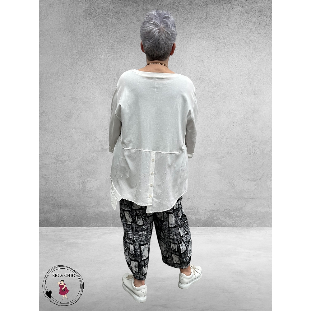 Maar dan… het onderste deel verrast! Dit gedeelte lijkt op een omgekeerde blouse en is uitgevoerd in een licht gecrashte stof, wat zorgt voor een speels en super apart effect.