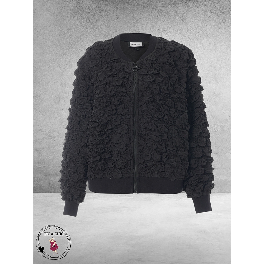 Het zwarte Gozzip bomber jasje is een echte blikvanger dankzij zijn unieke crinkle structuur.