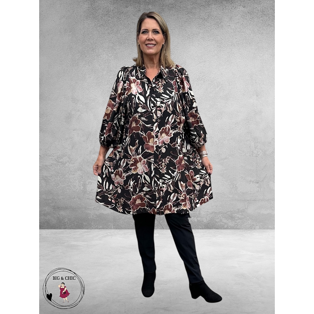 Gozzip Tuniek/Doorknoopblouse Agnete – Grafische Bloemenprint met Taillekoord en Lange MouwenVolg daarom altijd de wasvoorschriften op het waslabel.