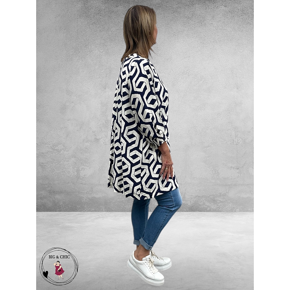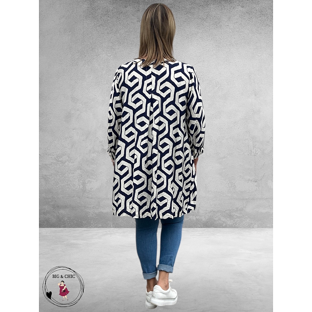 Gozzip Tuniek Meta – Blue & Offwhite Grafische Print