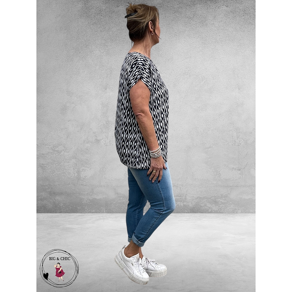 Een blouse die meteen energie en kleur in je outfit brengt! Het Vilana shirt van Kaffe Curve in het prachtige Midnight Blue met Chalk Graphic is een echte blikvanger, maar tegelijk heerlijk comfortabel om te dragen.