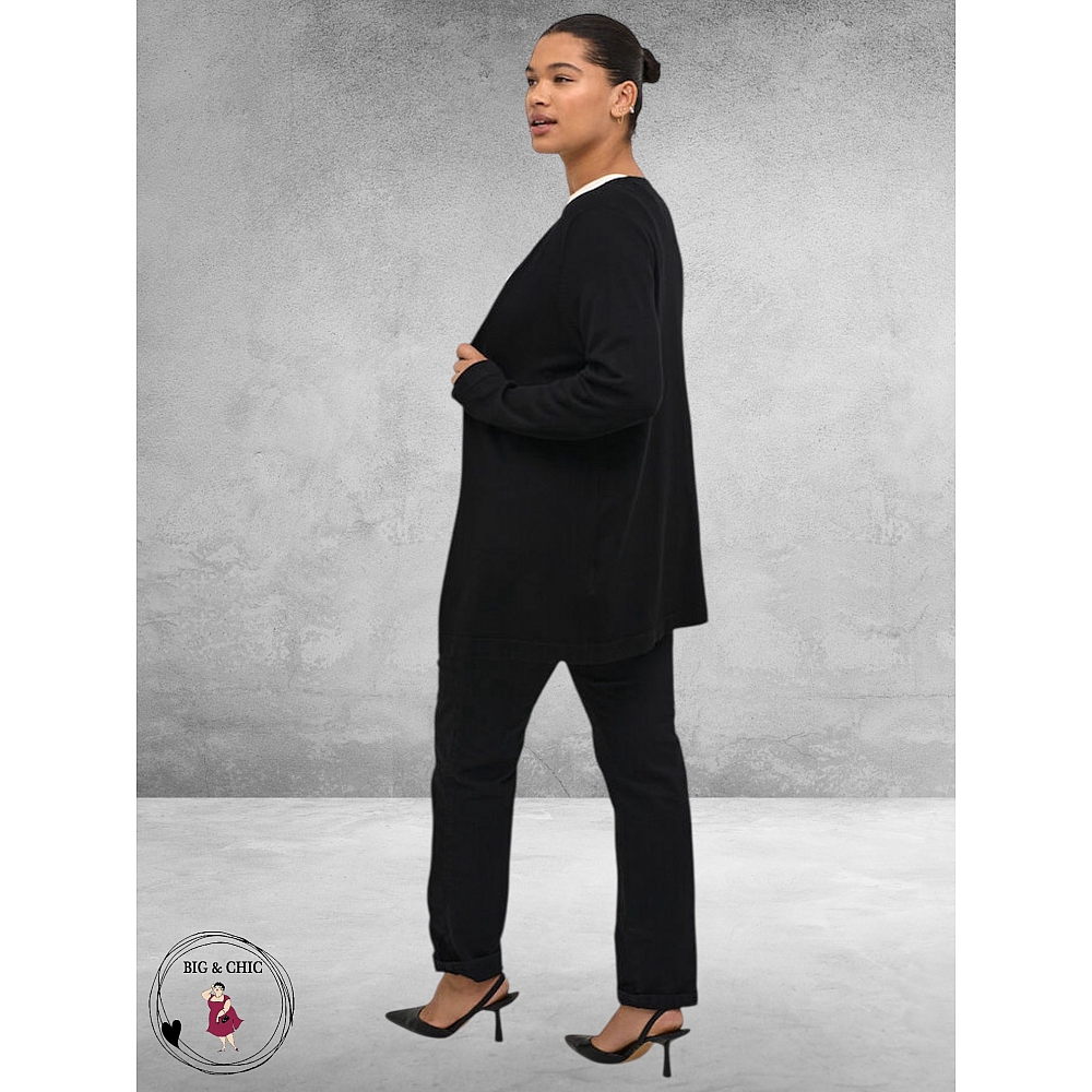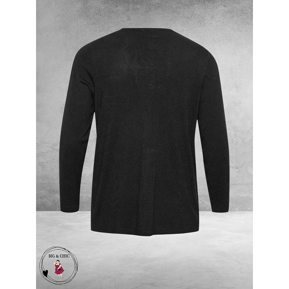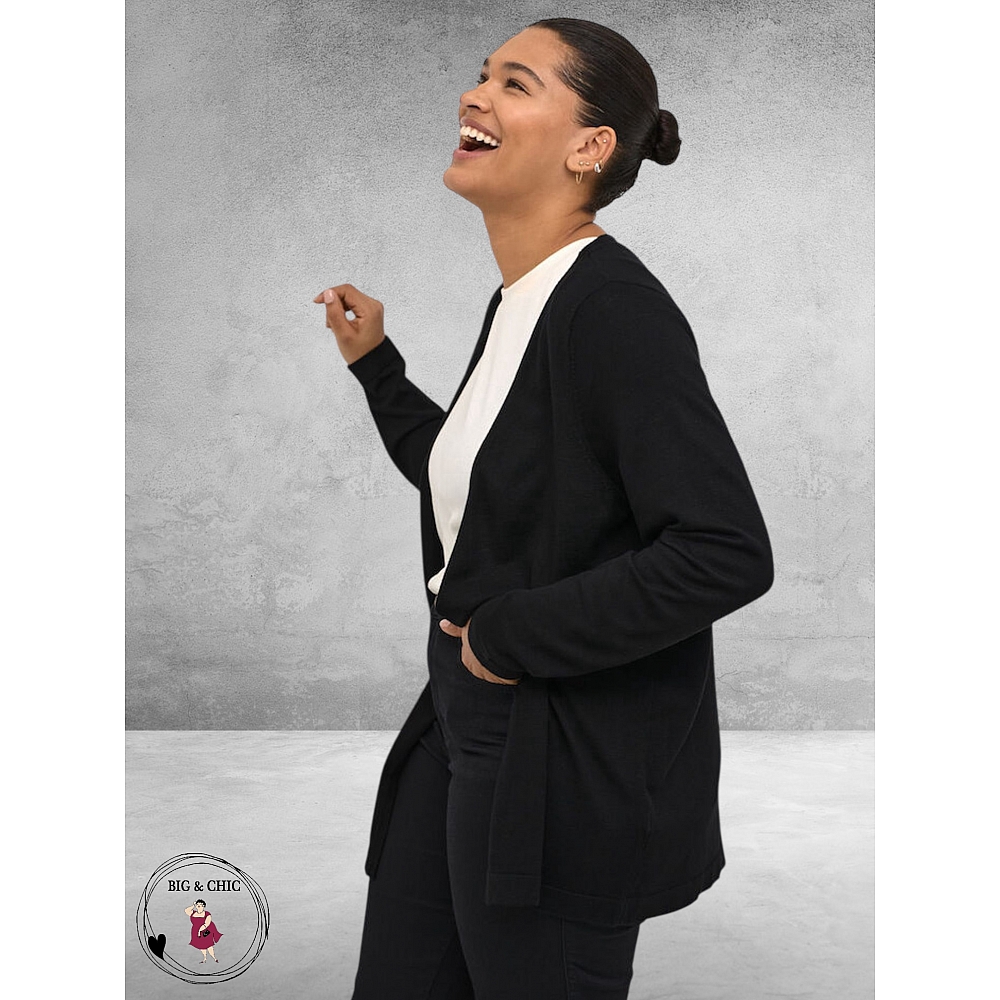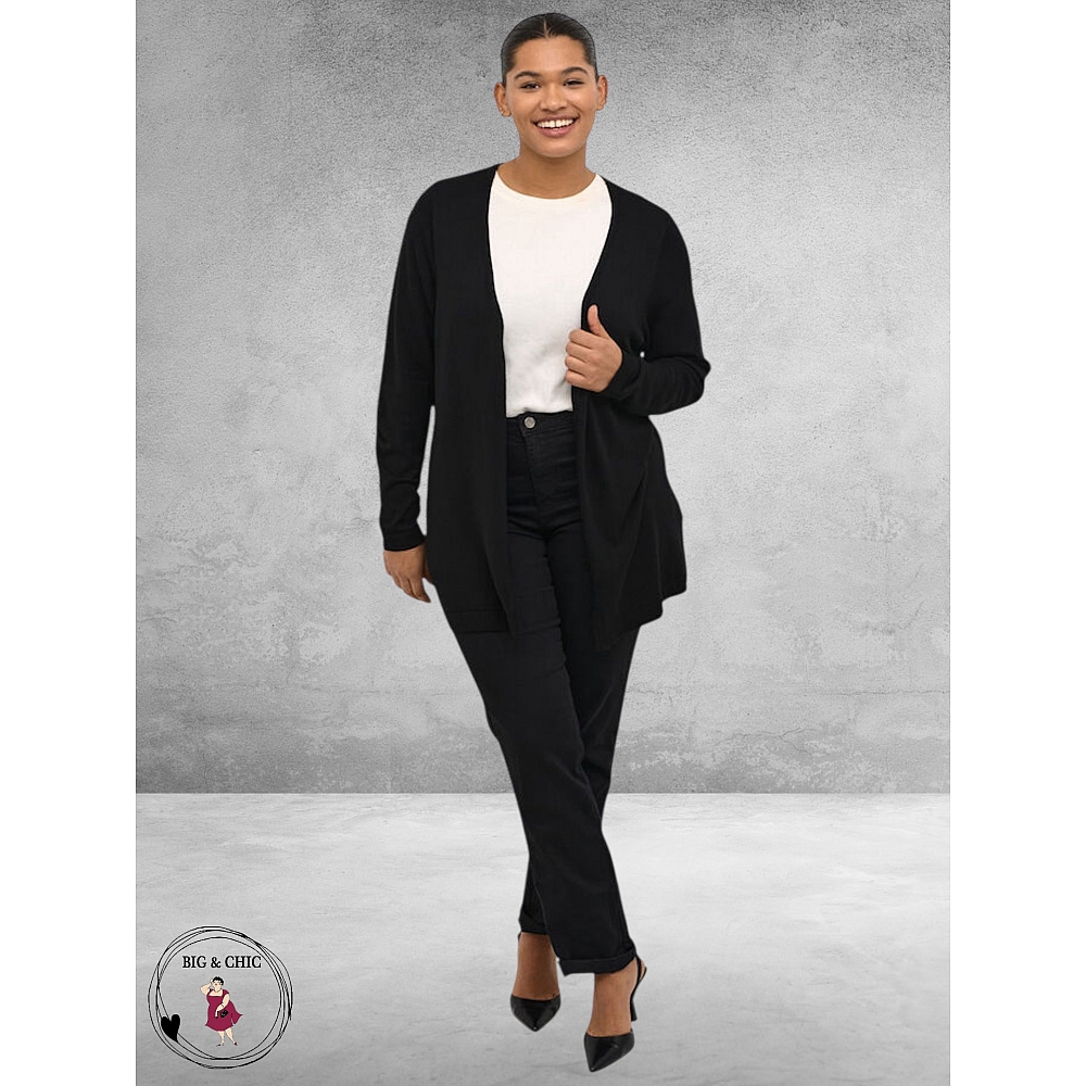 Lekker luchtig vestje van KAFFE CURVE in de kleur zwart met lange mouwen en open voorkant.