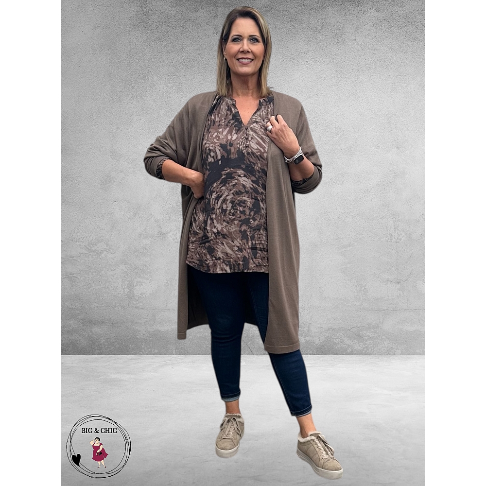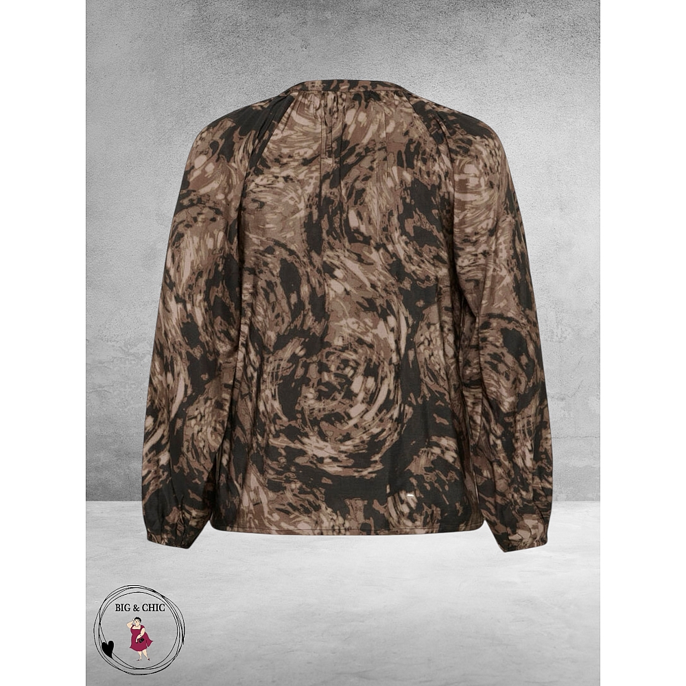 Kaffe Curve Blouse Jamia – Bruine Grafische Print met RaglanmouwenDe bruine grafische print geeft de blouse een eigentijdse uitstraling, terwijl de soepele stof mooi valt en prettig aanvoelt op de huid.