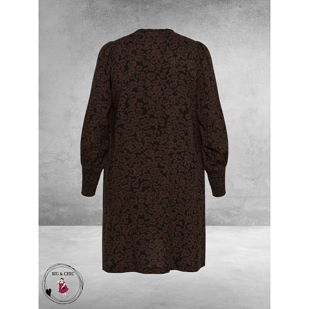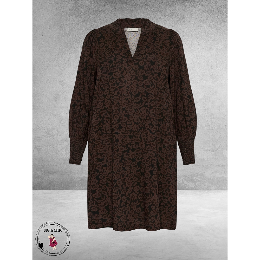 Licht geweven stof en los vallend model zorgen voor een vloeiende look, helemaal on trend in de trendkleur fudge met een zwarte flower print.