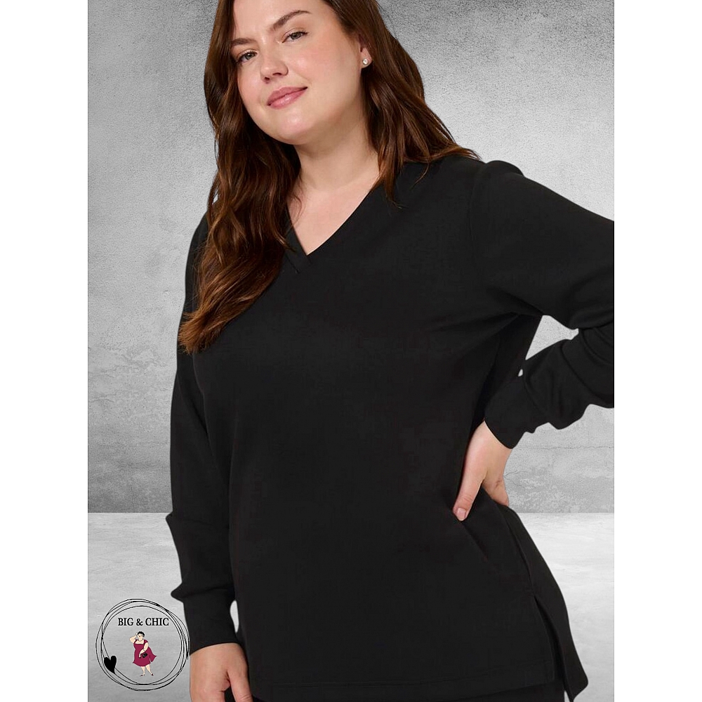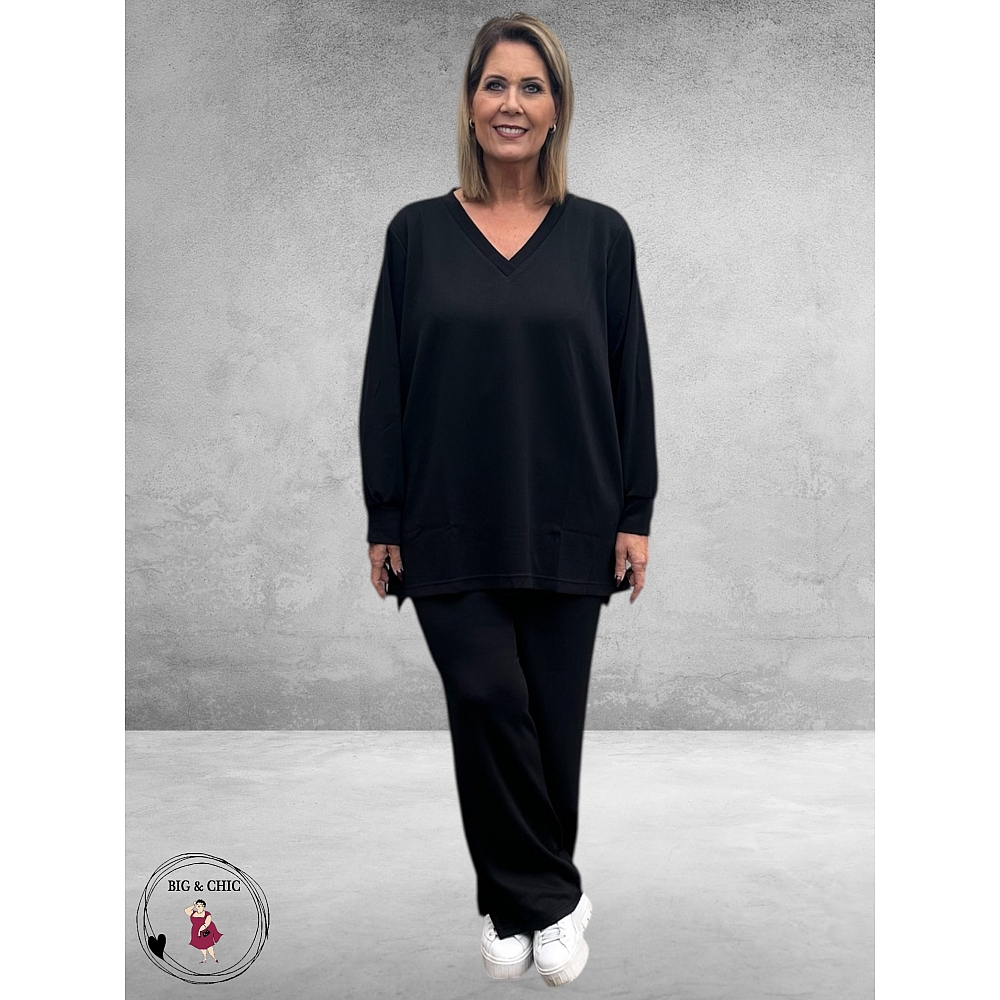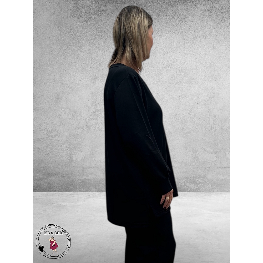 De vrouwelijke V-hals, boorden bij de mouwen en de achterkant die iets langer valt zorgen voor een moderne en flatterende pasvorm.