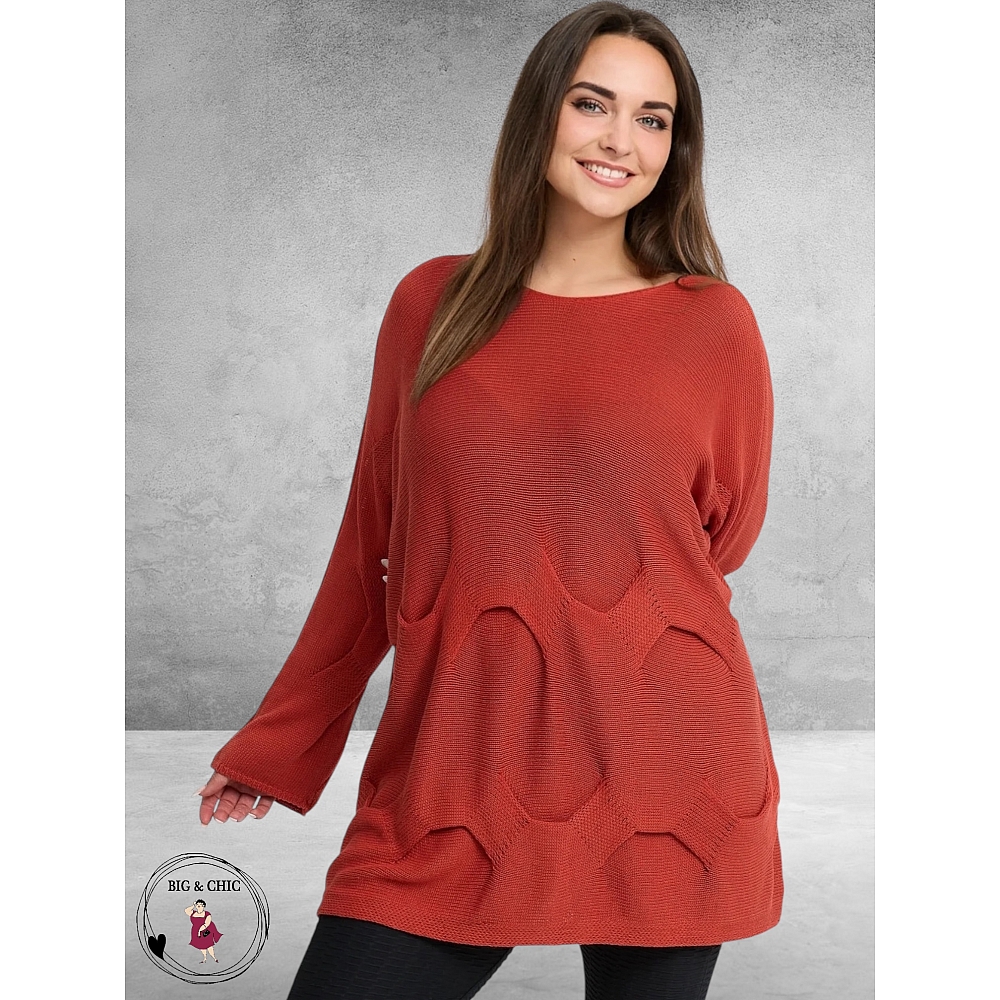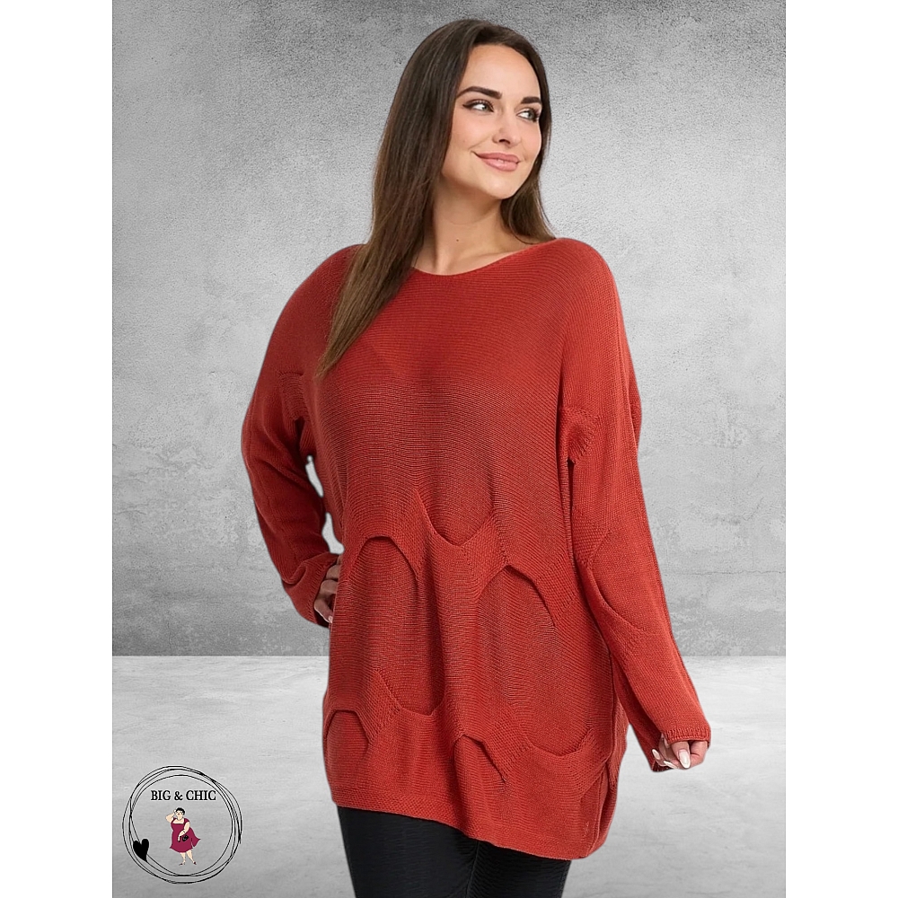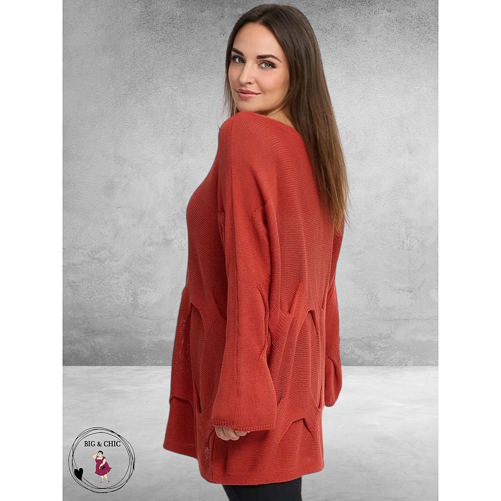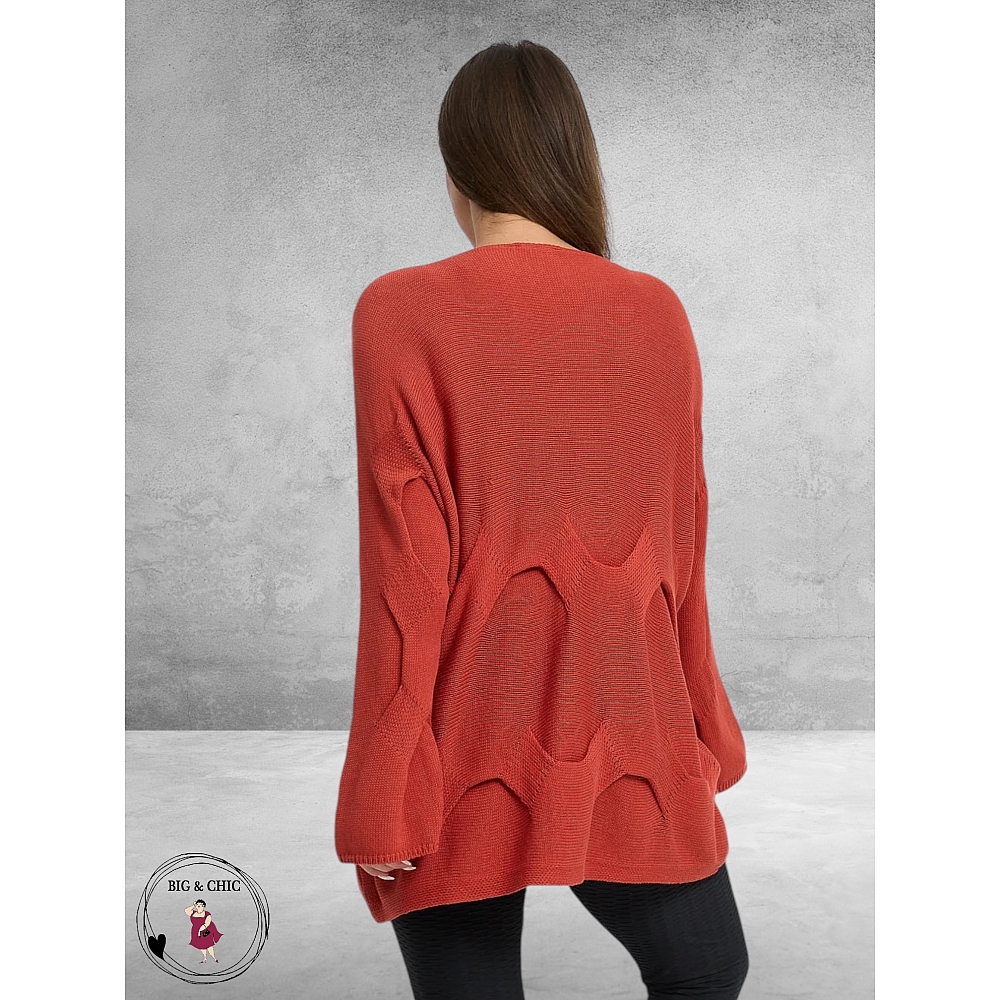 Dankzij het one size model past deze trui comfortabel van maat 46 t/m 52 – een ideale mix van gemak en stijl.