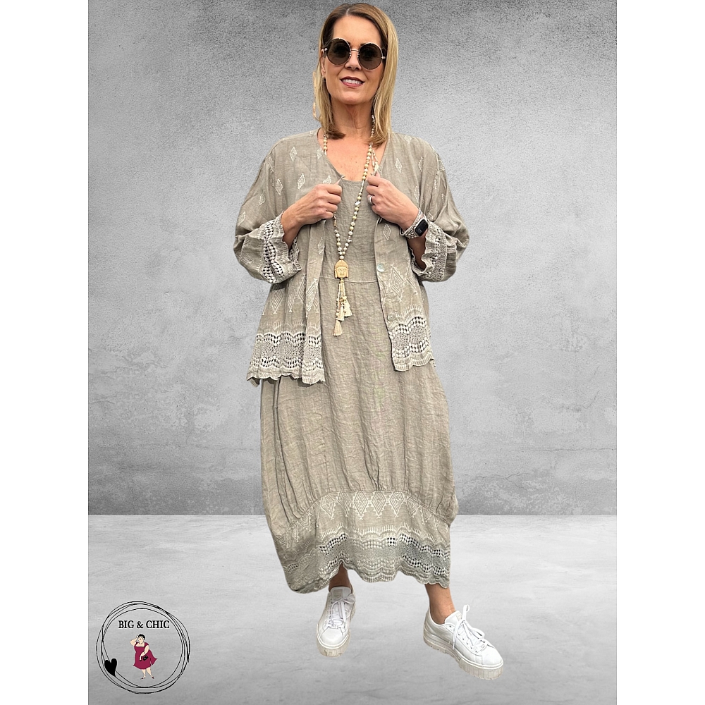 Moonshine Linnen Jurk met Jasje – Taupe