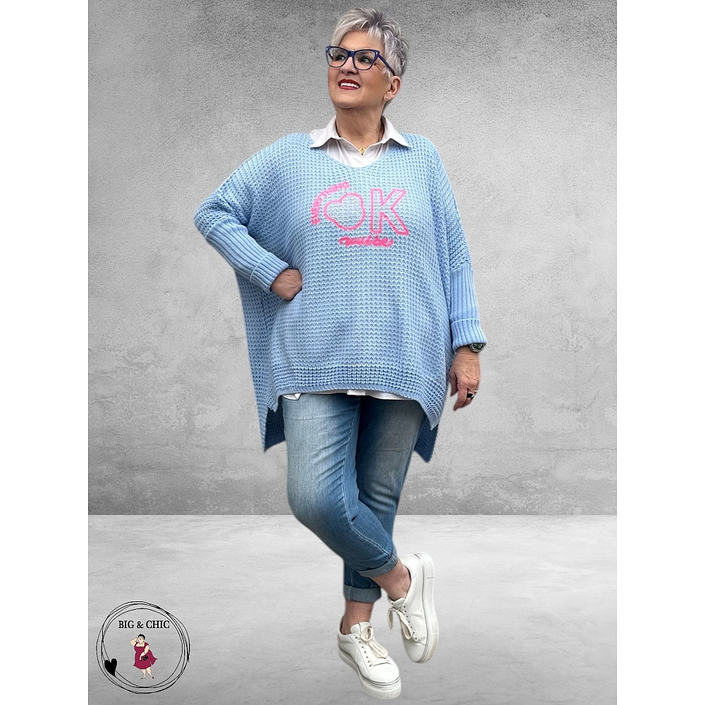 De blikvanger? De pinkkleurige print “Everything OK”, subtiel afgewerkt met fijne glitters voor een speelse en trendy sparkle.