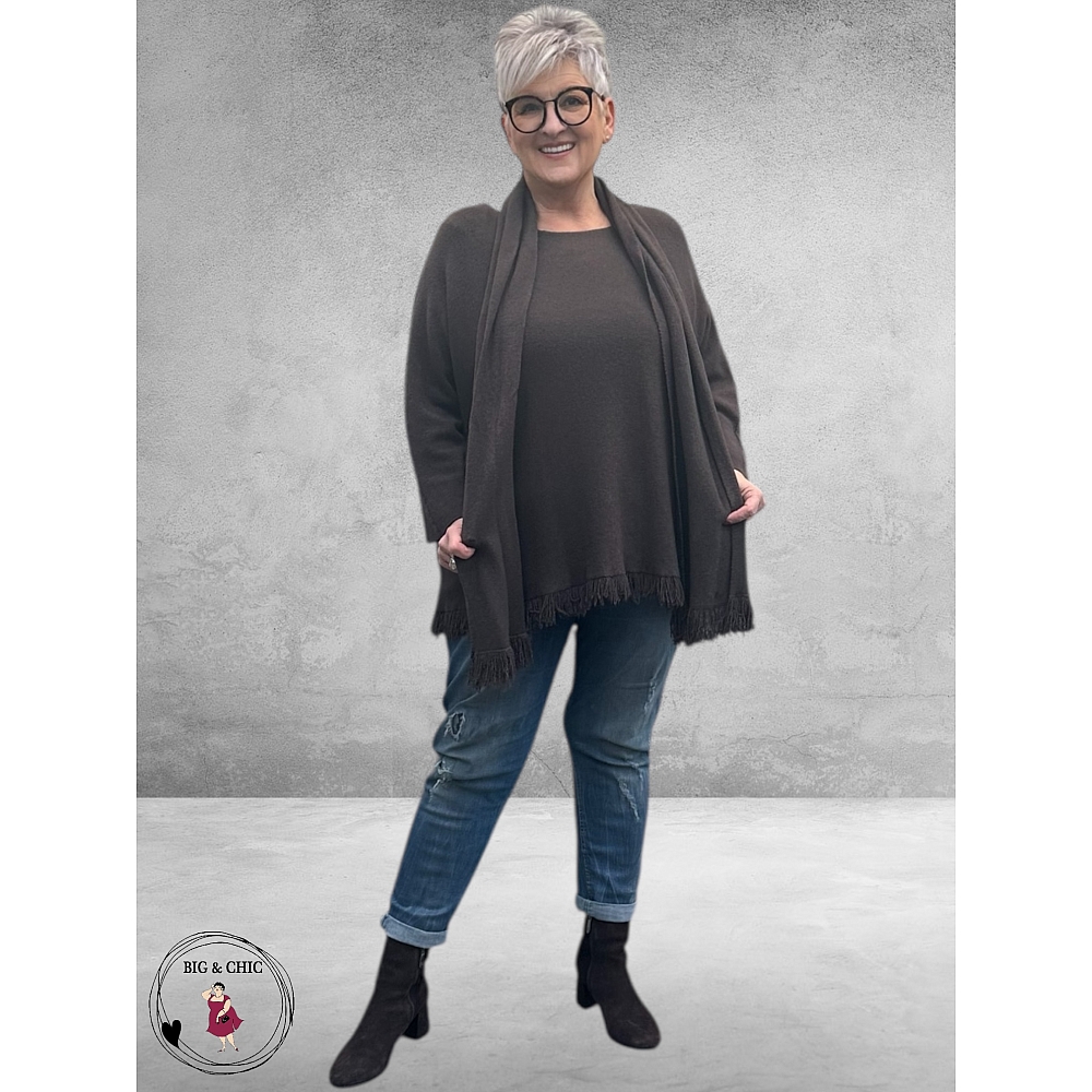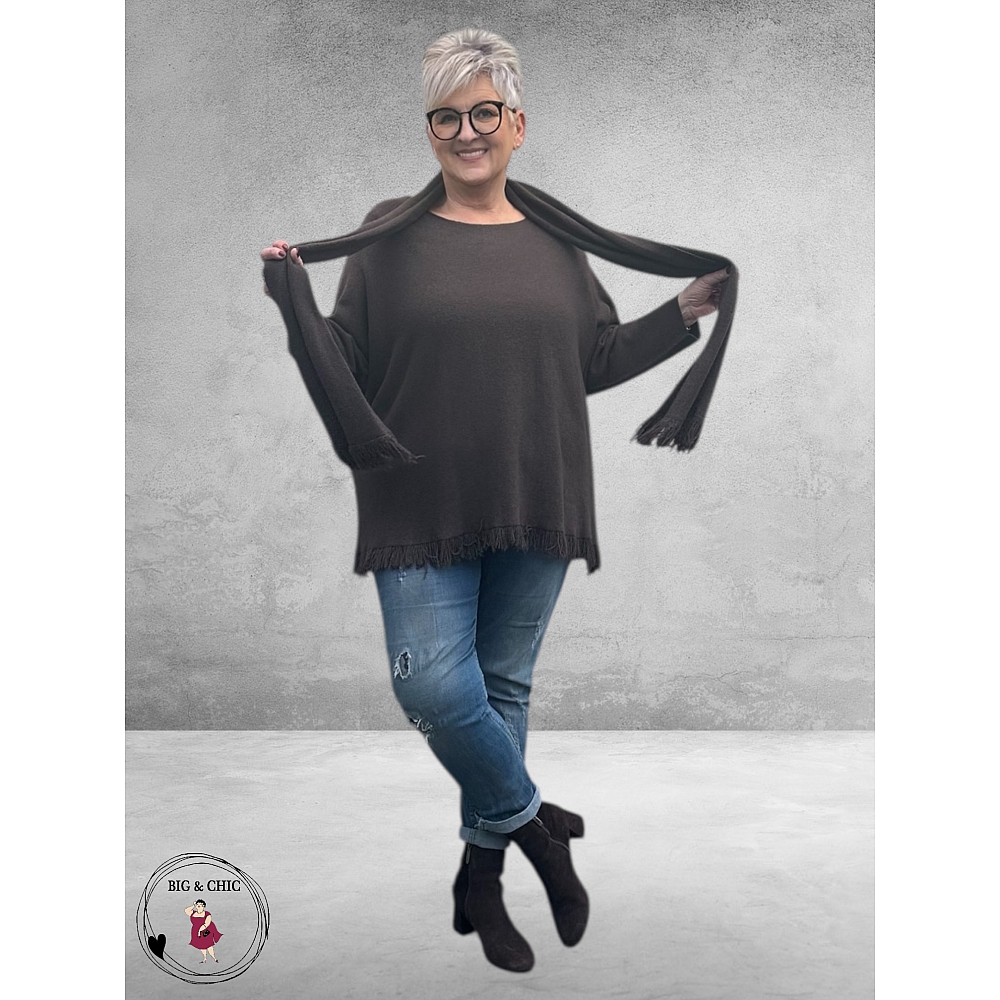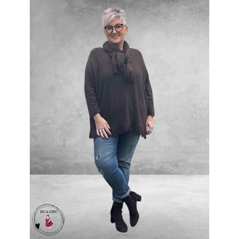NOSTALGIA Gebreide Trui Donker Bruin Met Sjaal