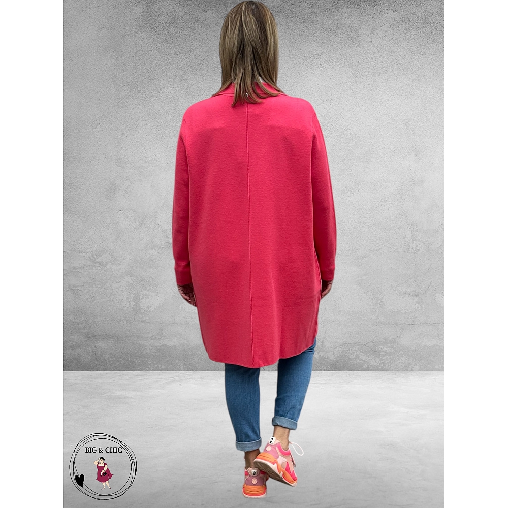 Lange gebreide blazer-vest – kleur Fragola (Framboos)
