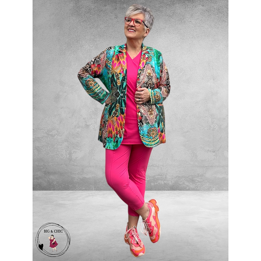 De stijlvolle reverskraag en de vier goudkleurige knopen geven de blazer een luxe touch, terwijl de twee zakken op het voorpand zorgen voor een praktische én modieuze afwerking.