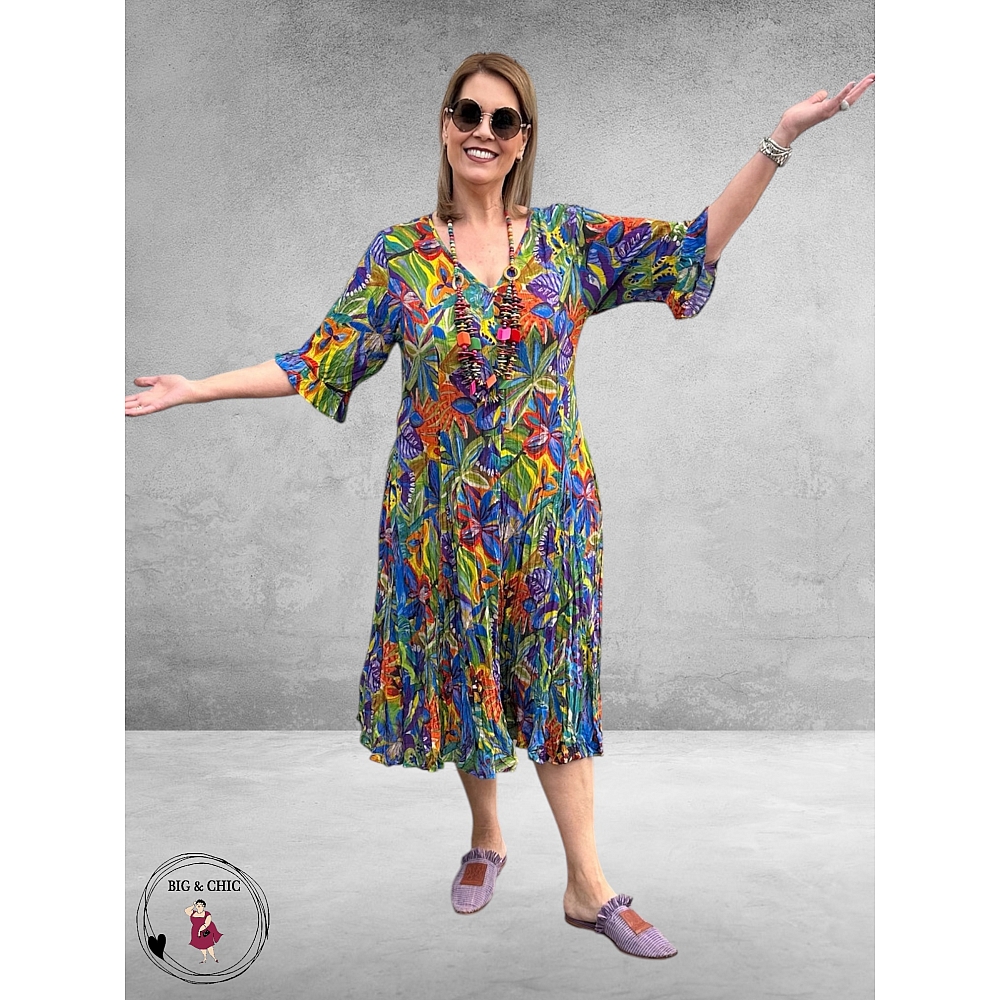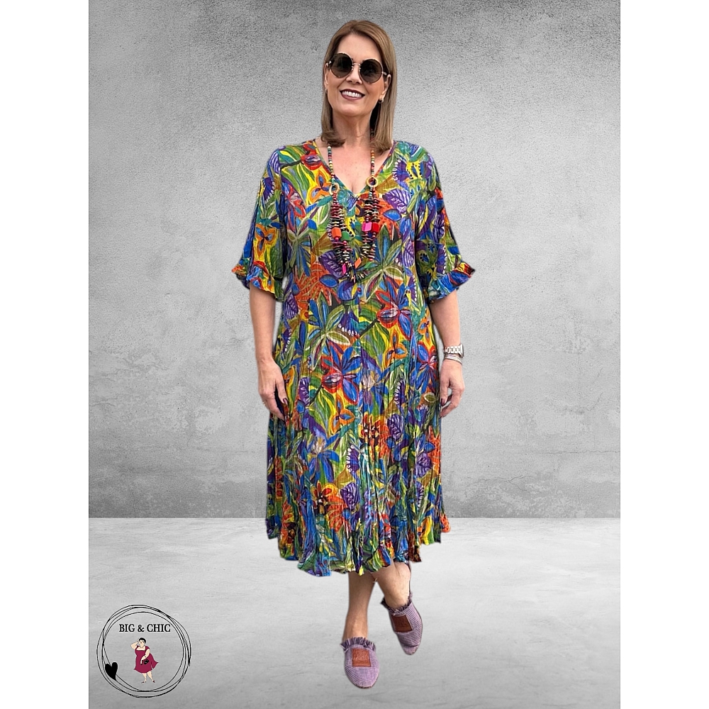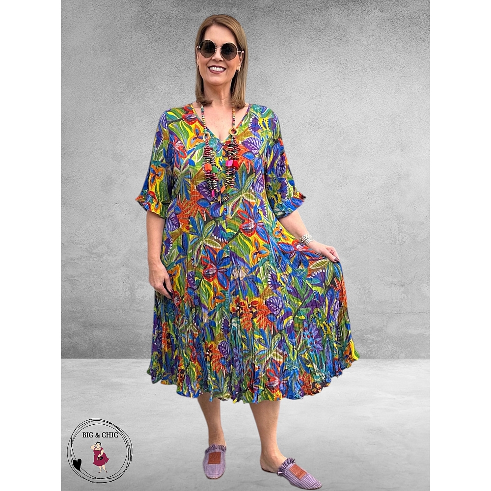 Een tijdloze en comfortabele zomerjurk met een prachtige kleurrijke print