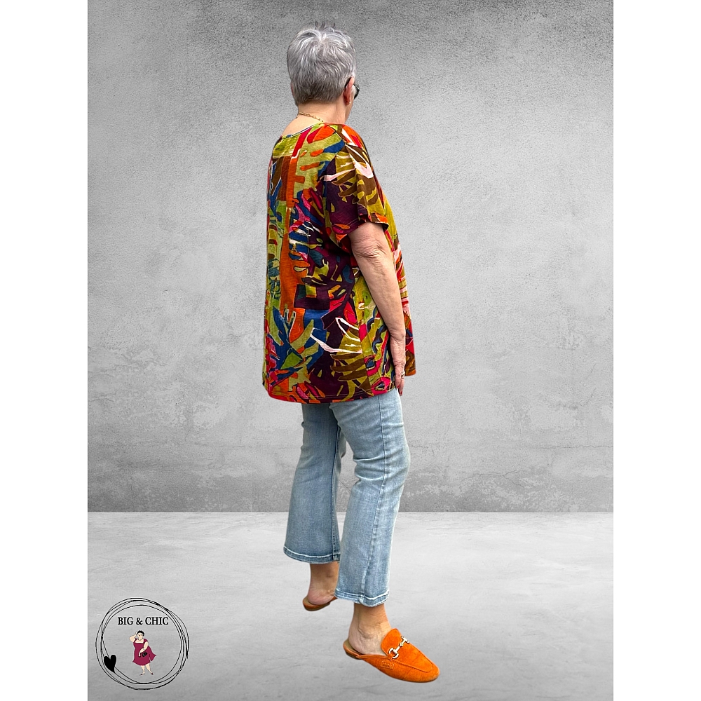 De bijzondere mix van kleuren en patronen geeft het shirt een eigentijdse en speelse uitstraling.