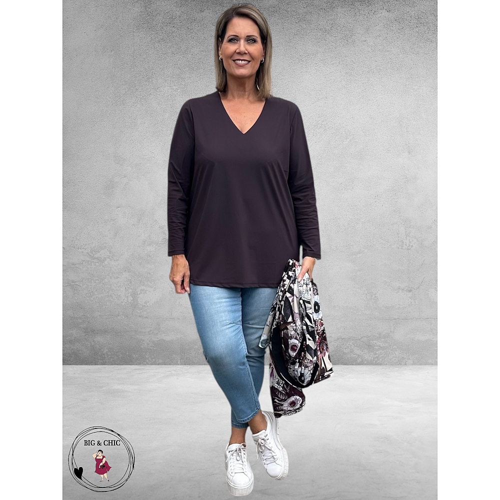 PLUS BASICS Shirt Tee V Slim Langmouw Mud