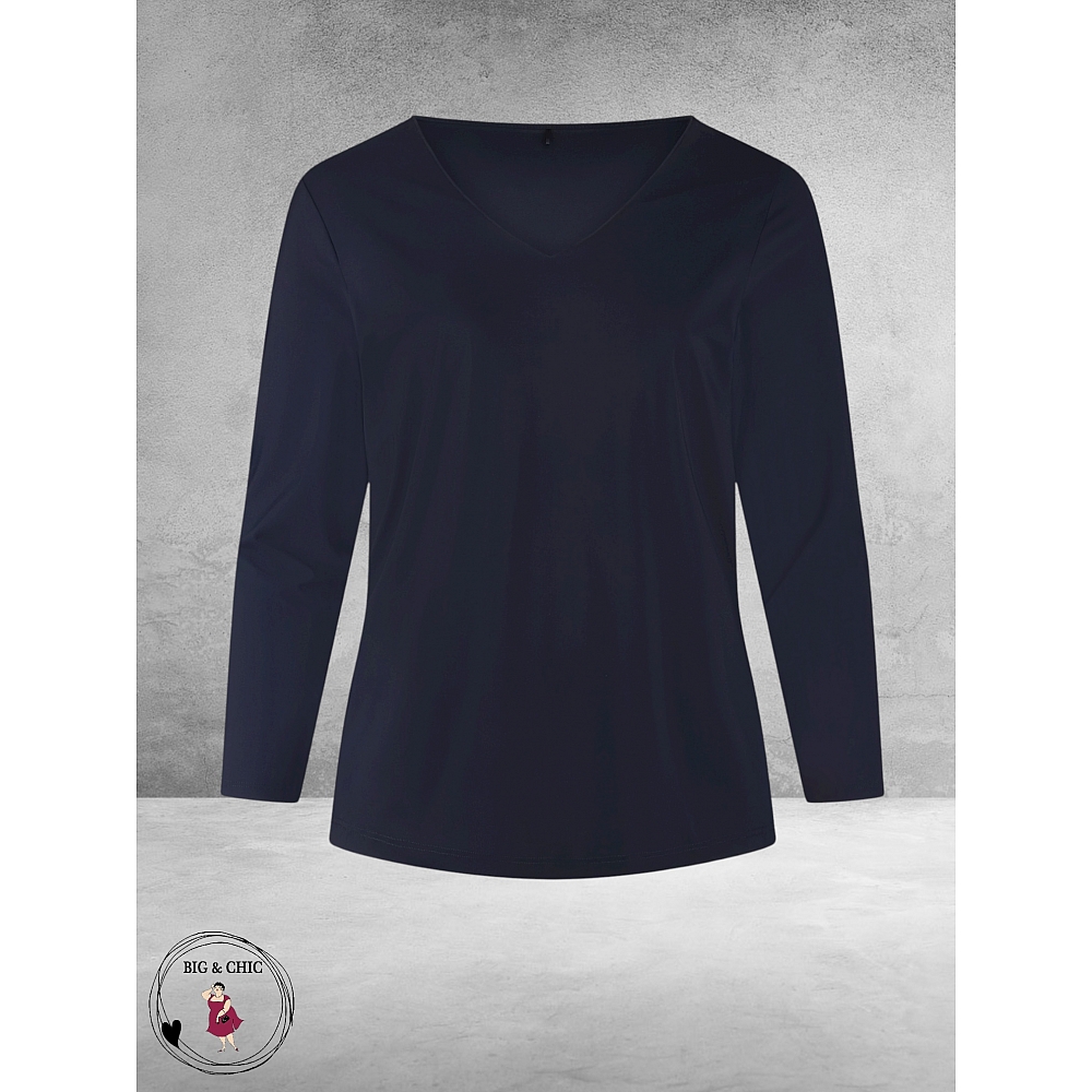 PLUS BASICS Shirt Tee Ls Pofmouw Navy