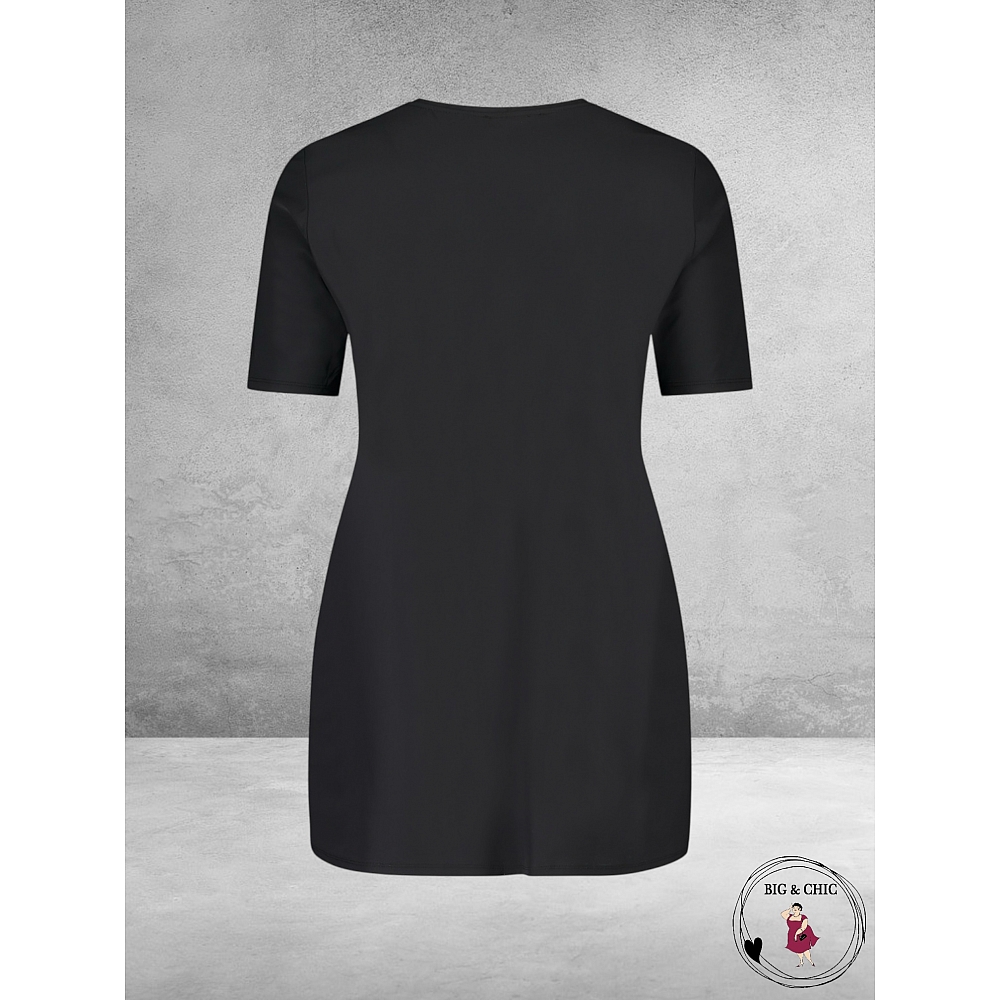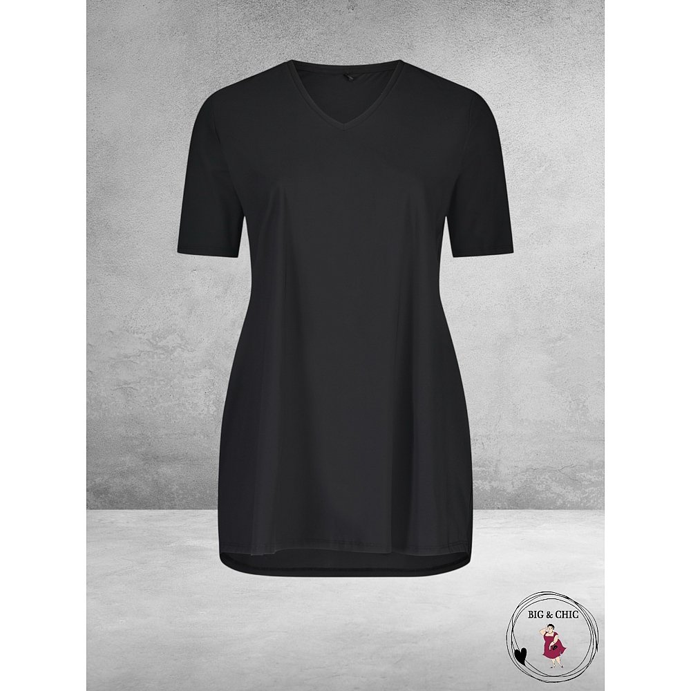 ** Basic COLLECTIE **Tee V-Neck ZwartT-shirt met V-hals en slanke en korte mouw .Materiaal:72% Polyamide & 28% ElastaneOpgelet Dames!Wij meten handmatig ieder kledingstuk, per maat op en vermelden d...