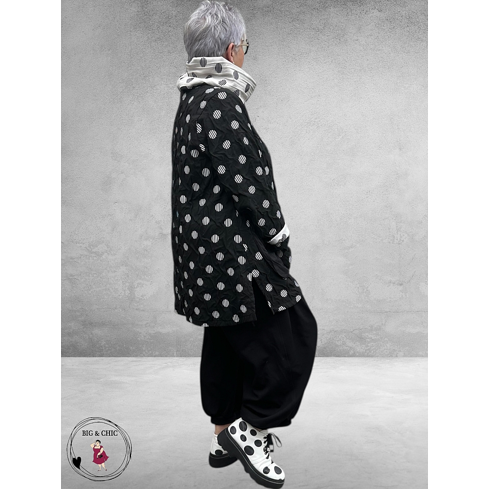 Sinne Design tuniek – zwart met witte bolletjes, crinkle stof & zakken met rits