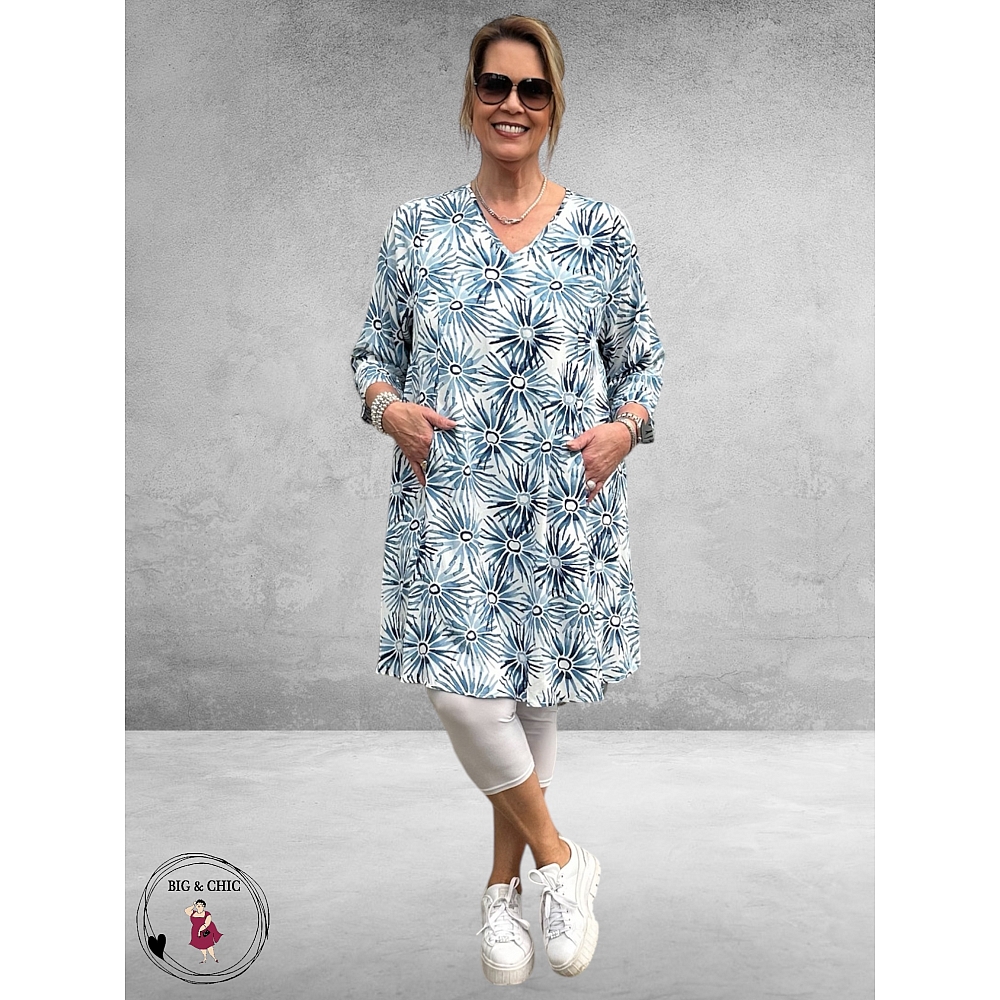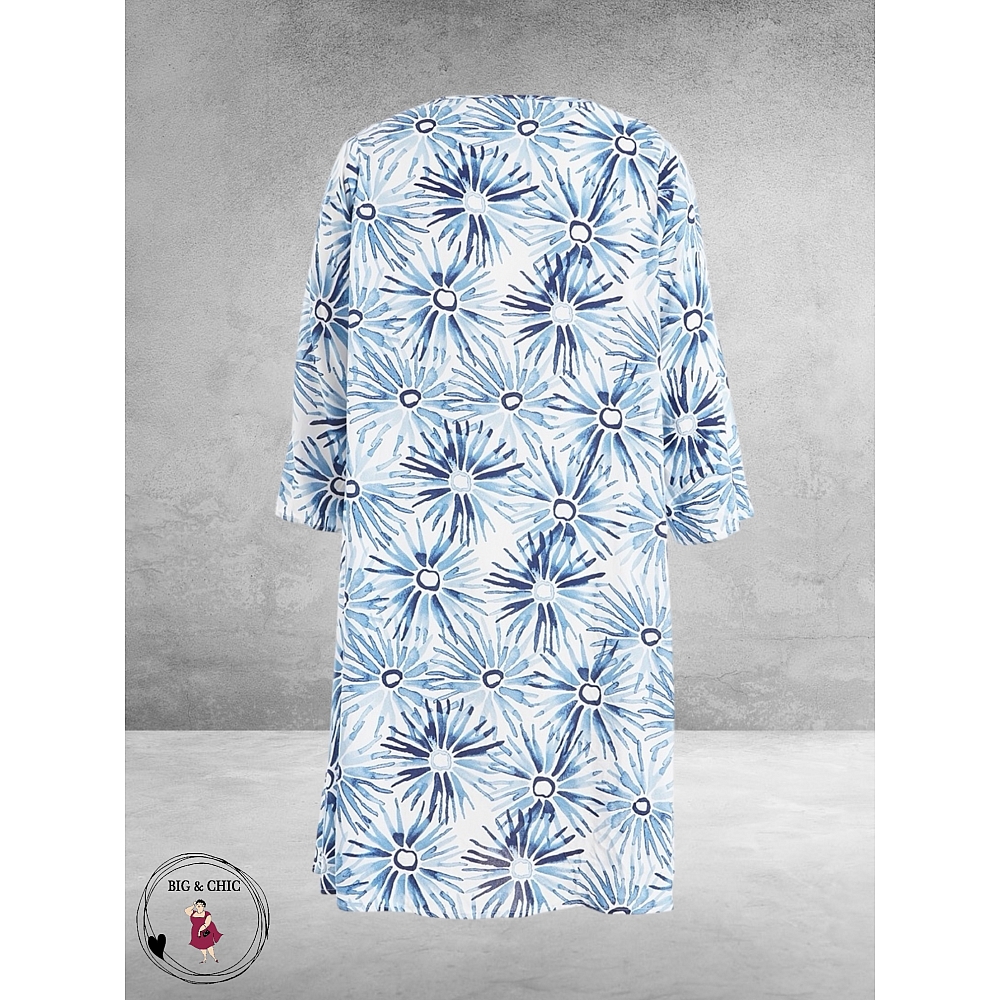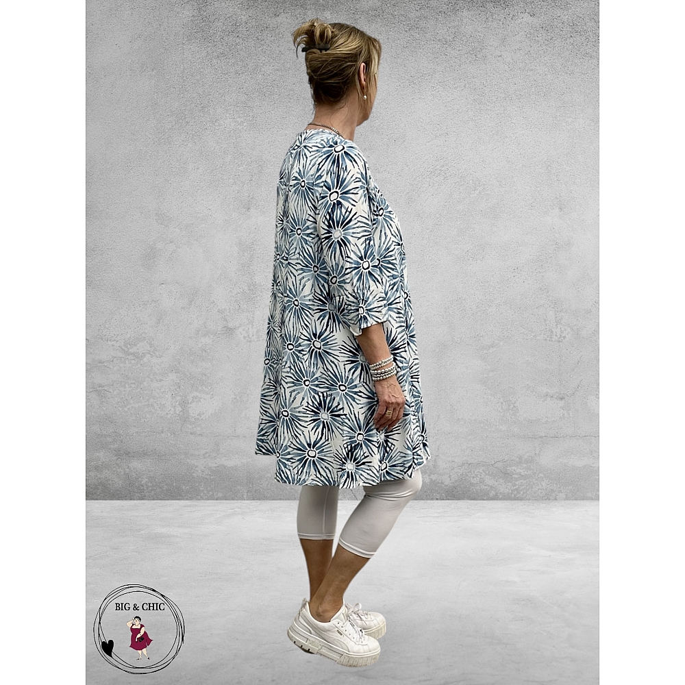 Studio Jurk BRIGITTE Wit-Blauw-Flowers