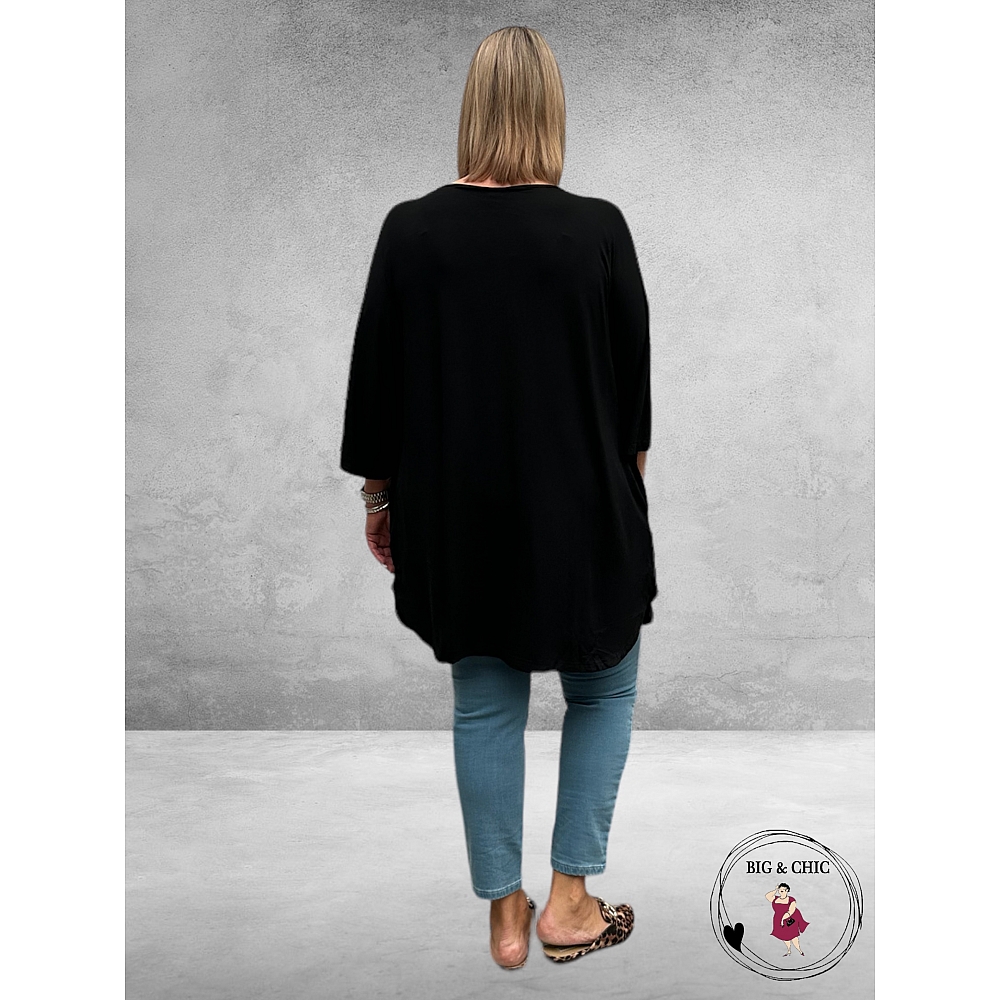 Elegante zwarte tuniek van STUDIO in heerlijk comfortable en elastisch viscose en jersey kwaliteit, de tuniek heeft een fijn speels detail met ring en een arm detail.