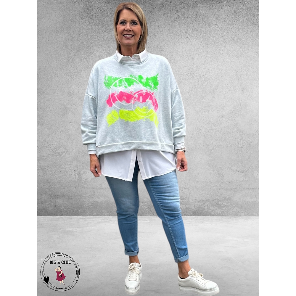 Deze prachtige sweater is uitgevoerd in een zachte, rustige kleur en heeft een stijlvolle driekleurige print op het voorpand.