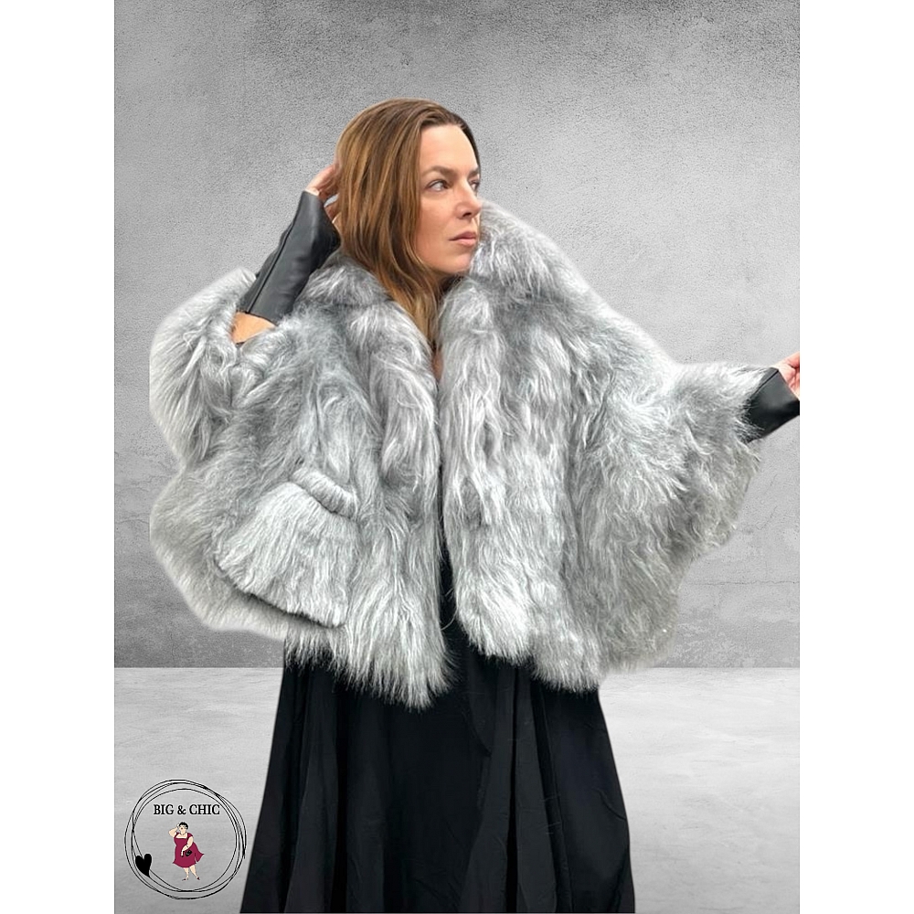 Vincenzo Allocca Fluffy Jasje – Grijs, Kort Model (One Size)Ook verkrijgbaar in het zwart.