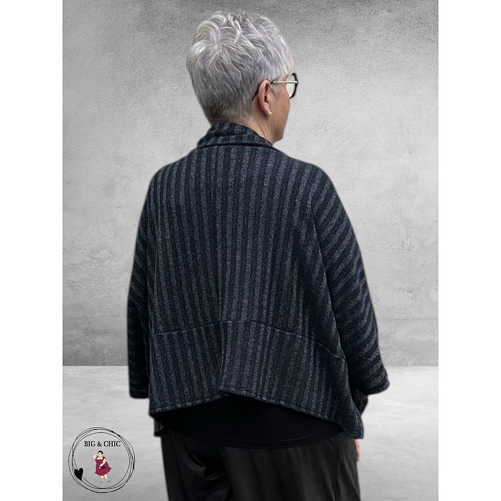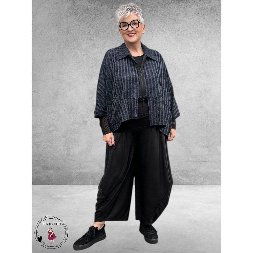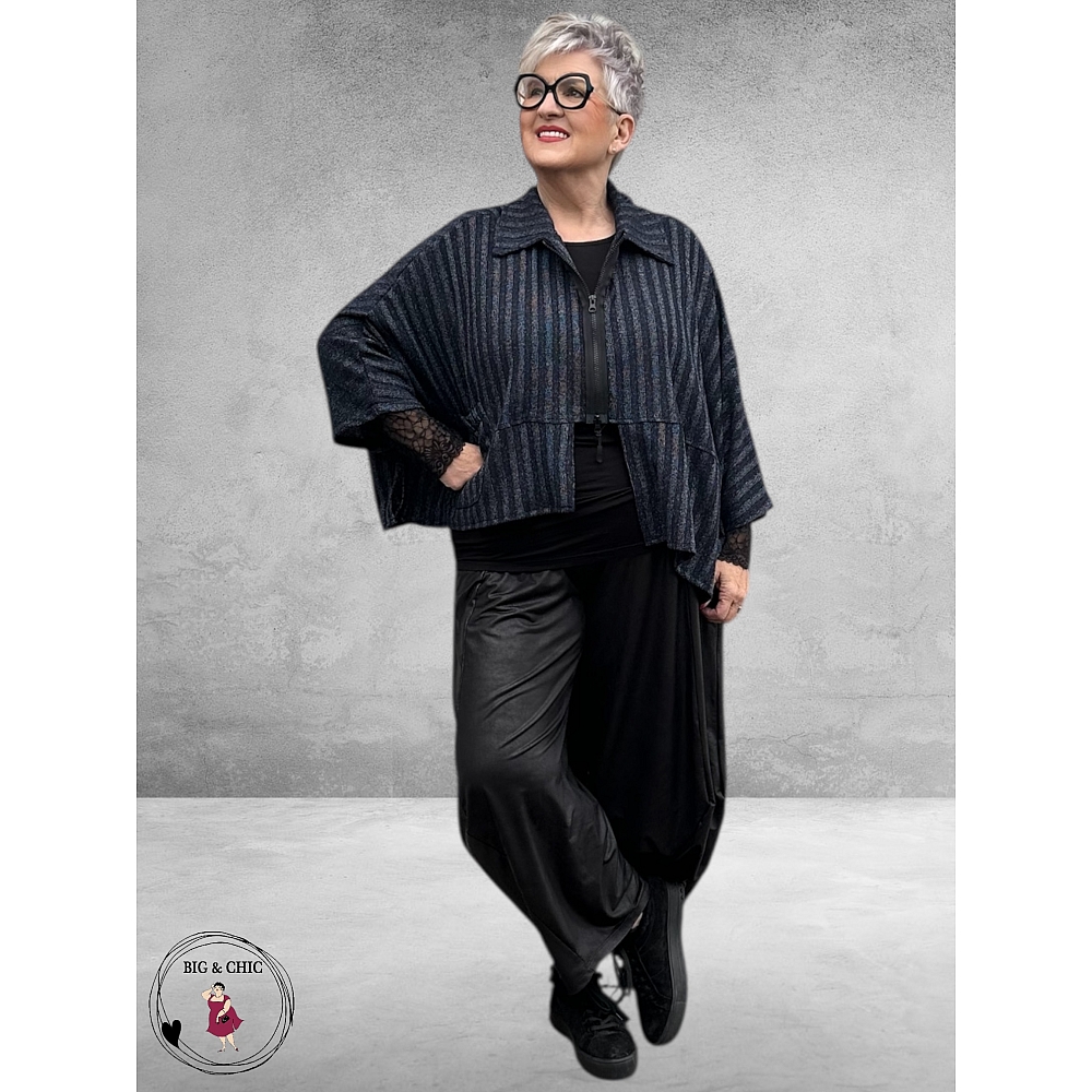 De kraag en de opgestikte zakken aan de voorzijde versterken het casual-chique karakter, terwijl de zijsplitten zorgen voor extra bewegingsvrijheid en een mooie valling.