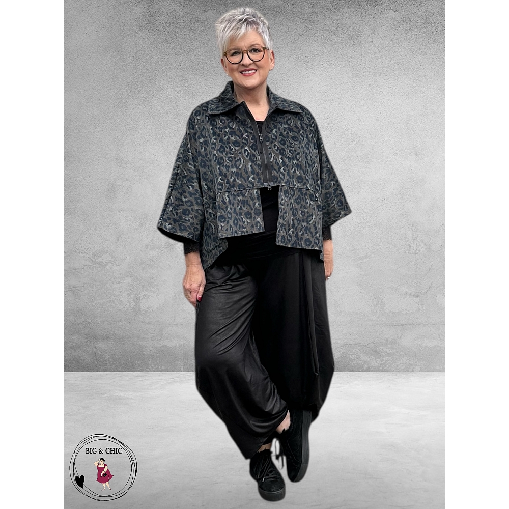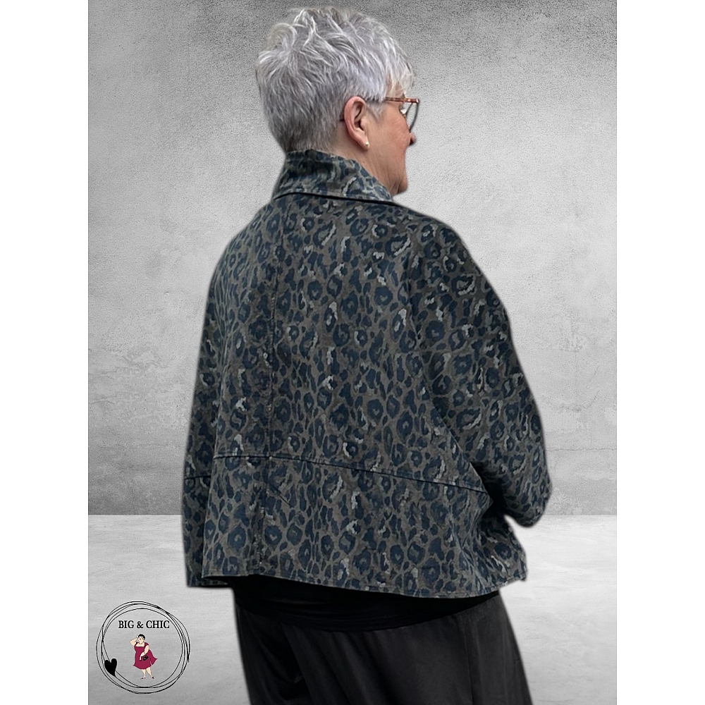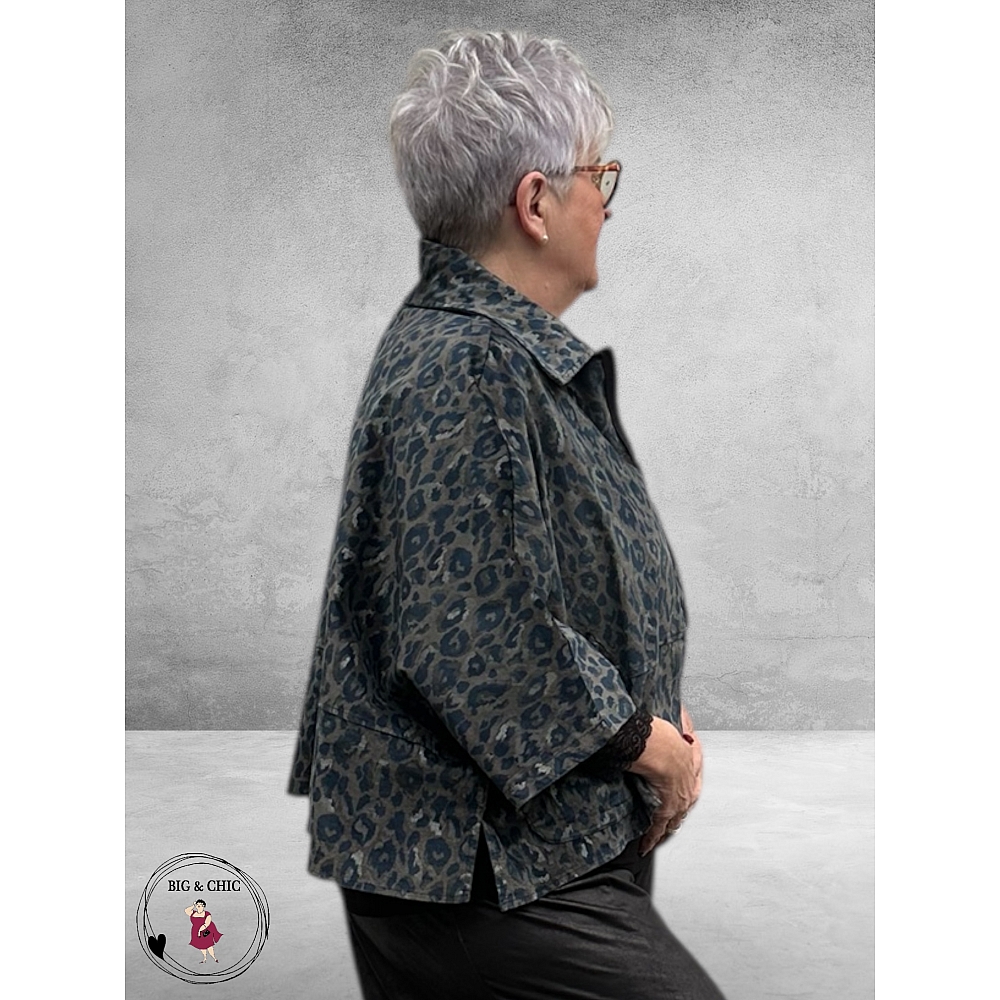 Vincenzo Allocca Jasje – Blauw Panterprint met Kraag en Opgestikte ZakkenDit blauwe jasje van Vincenzo Allocca met een panterprint in het blauwe kleurenpallet heeft een korte A-lijn pasvorm die soepel valt en makkelijk te combineren is.